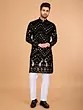 Peacock Motifs Thread And Sequins Work Mandarin Collar Pure Viscose Rayon Kurta For Wedding Occasion