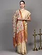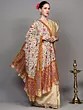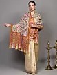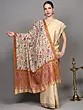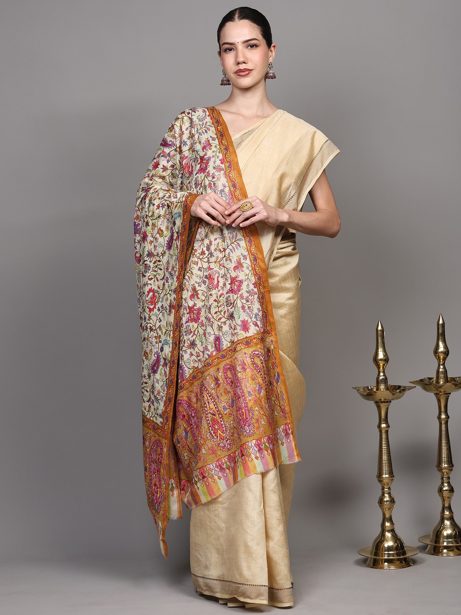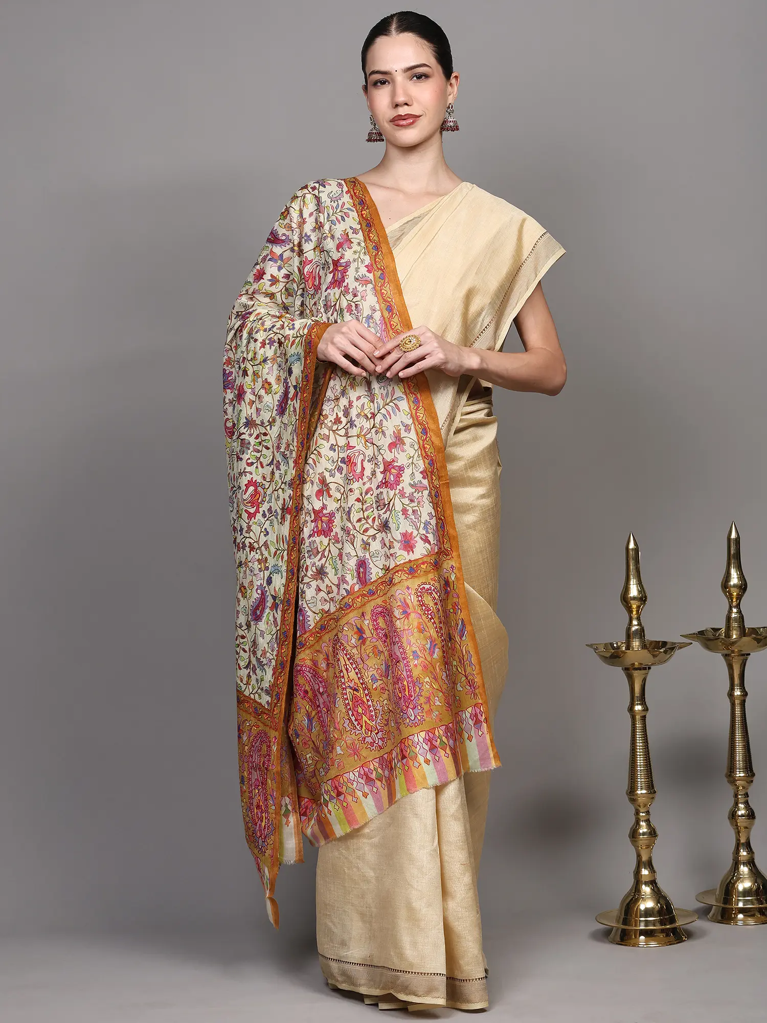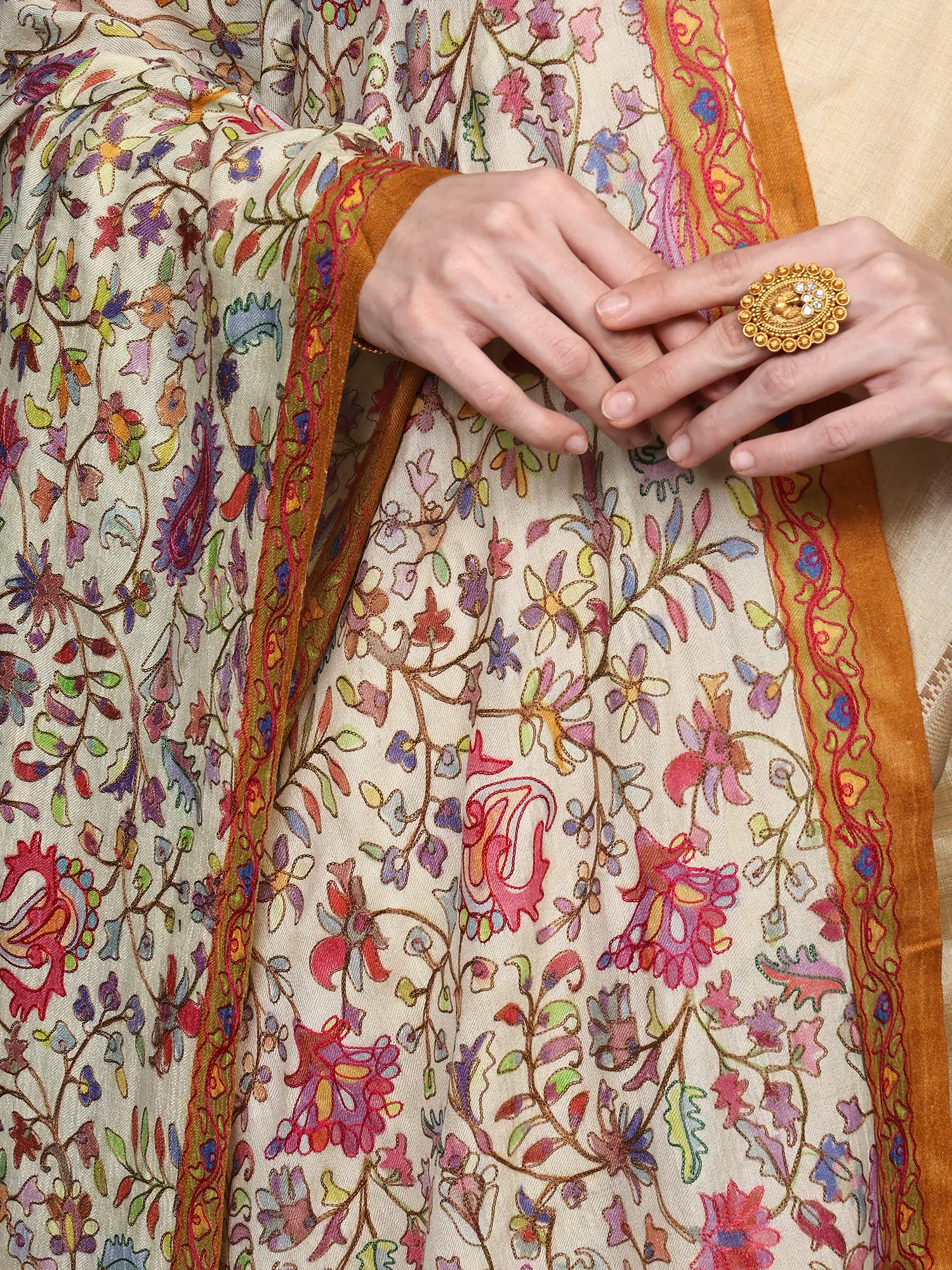 Light-Taupe Kalamkari Embroidered Shawl with Multicolor Paisleys-Flowers Motifs from Amritsar