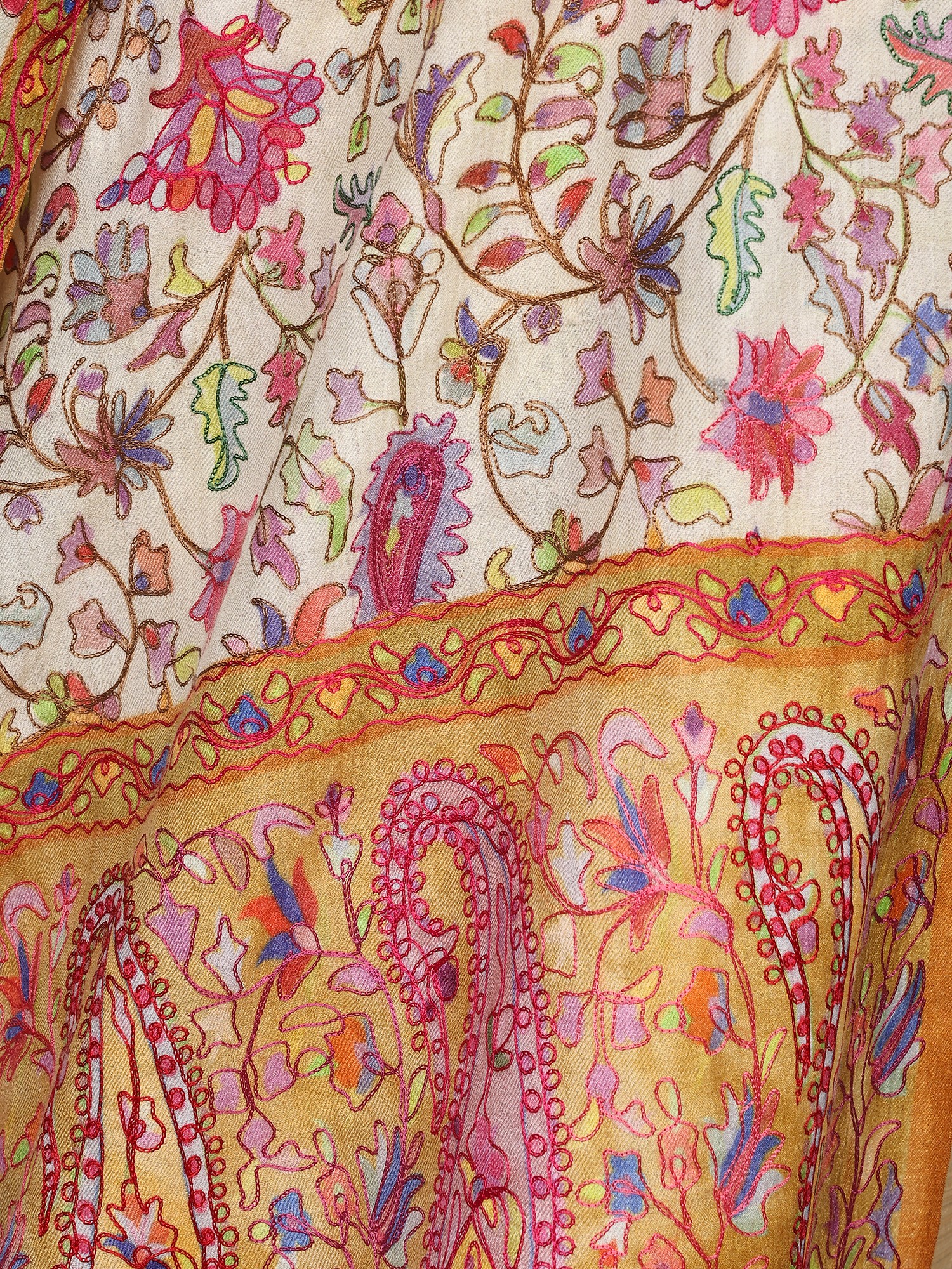 Multicolor Kalamkari Shawl with Aari Embroidery and Giant Paisley Motifs from Amritsar