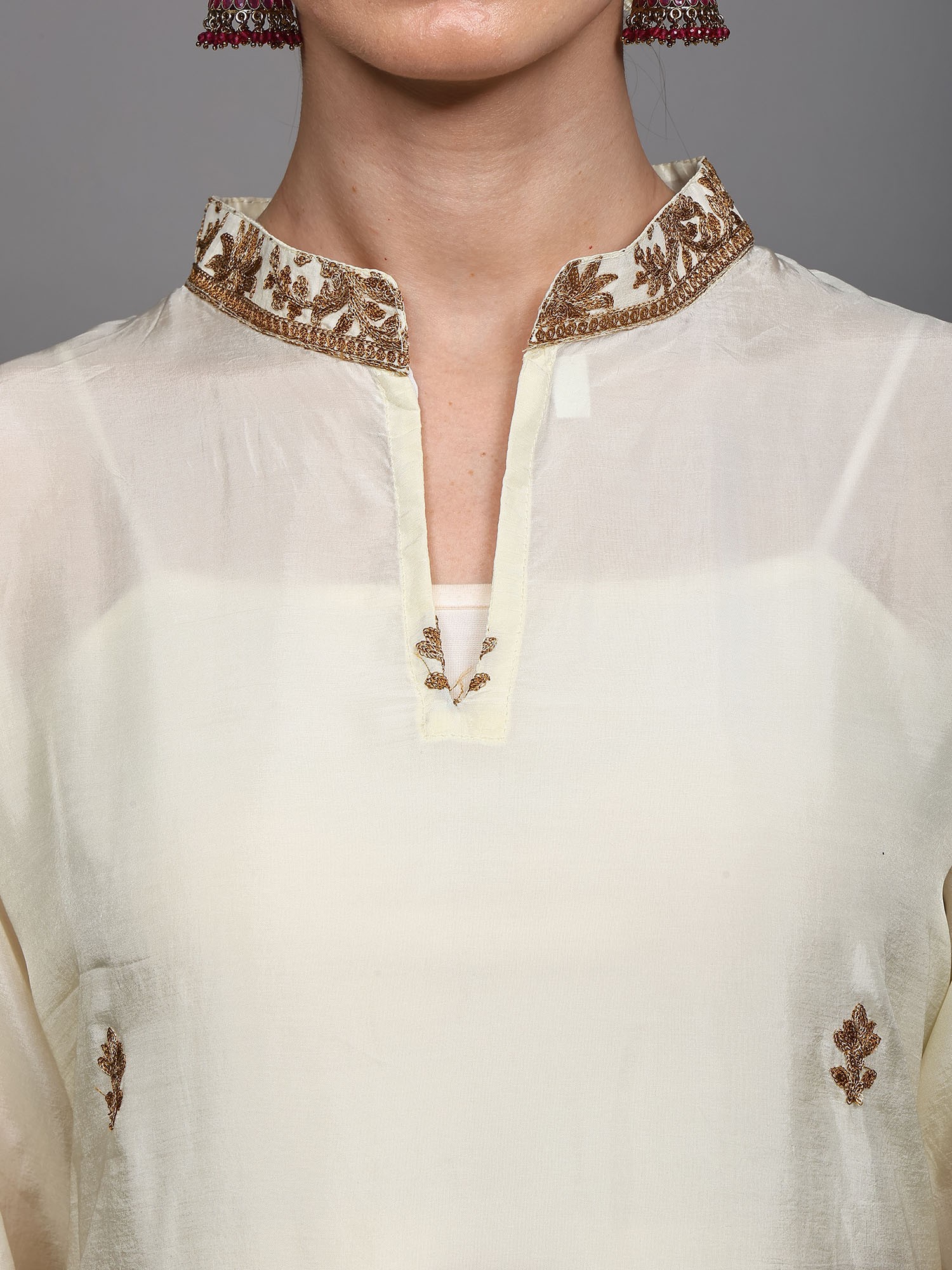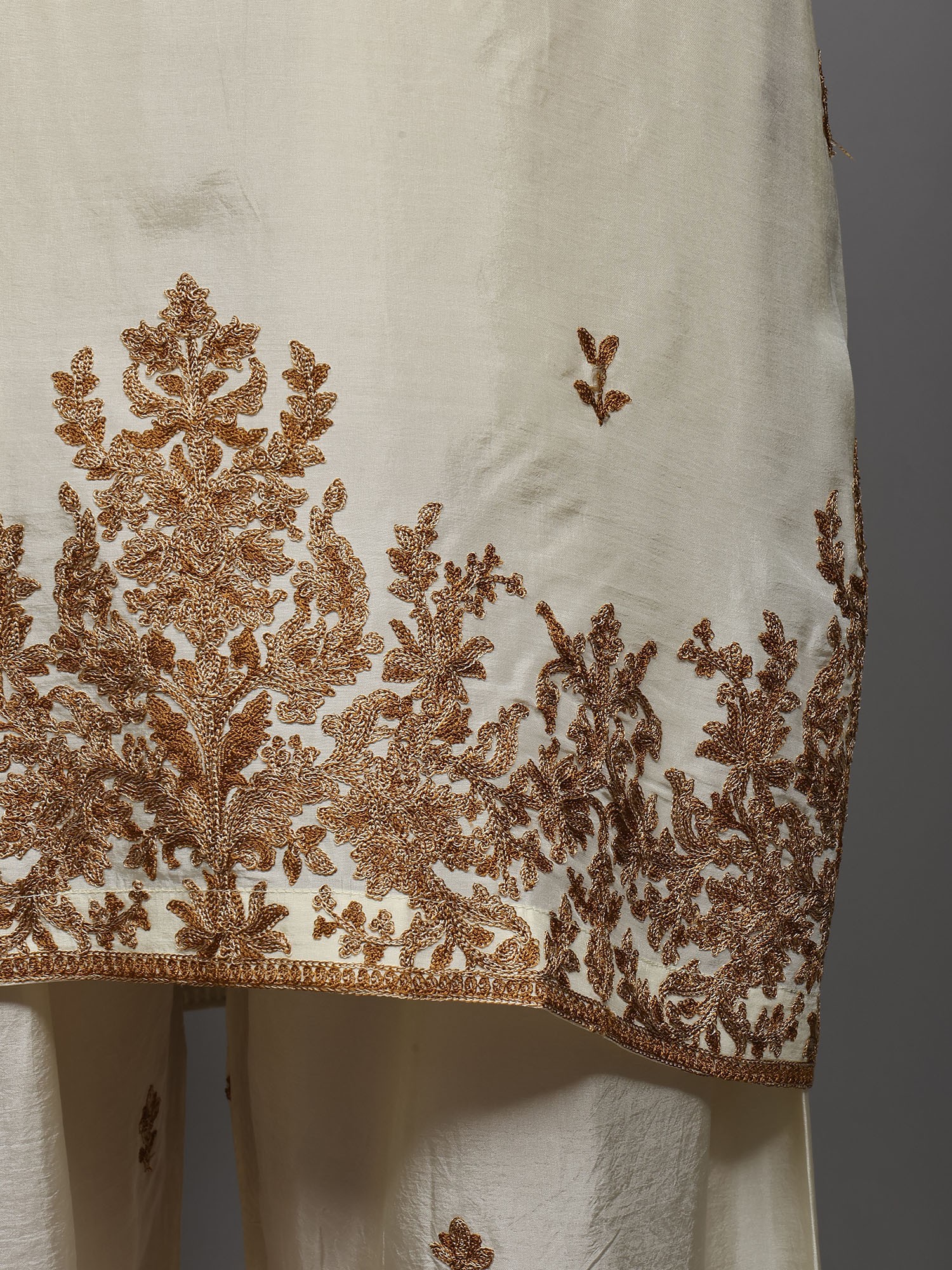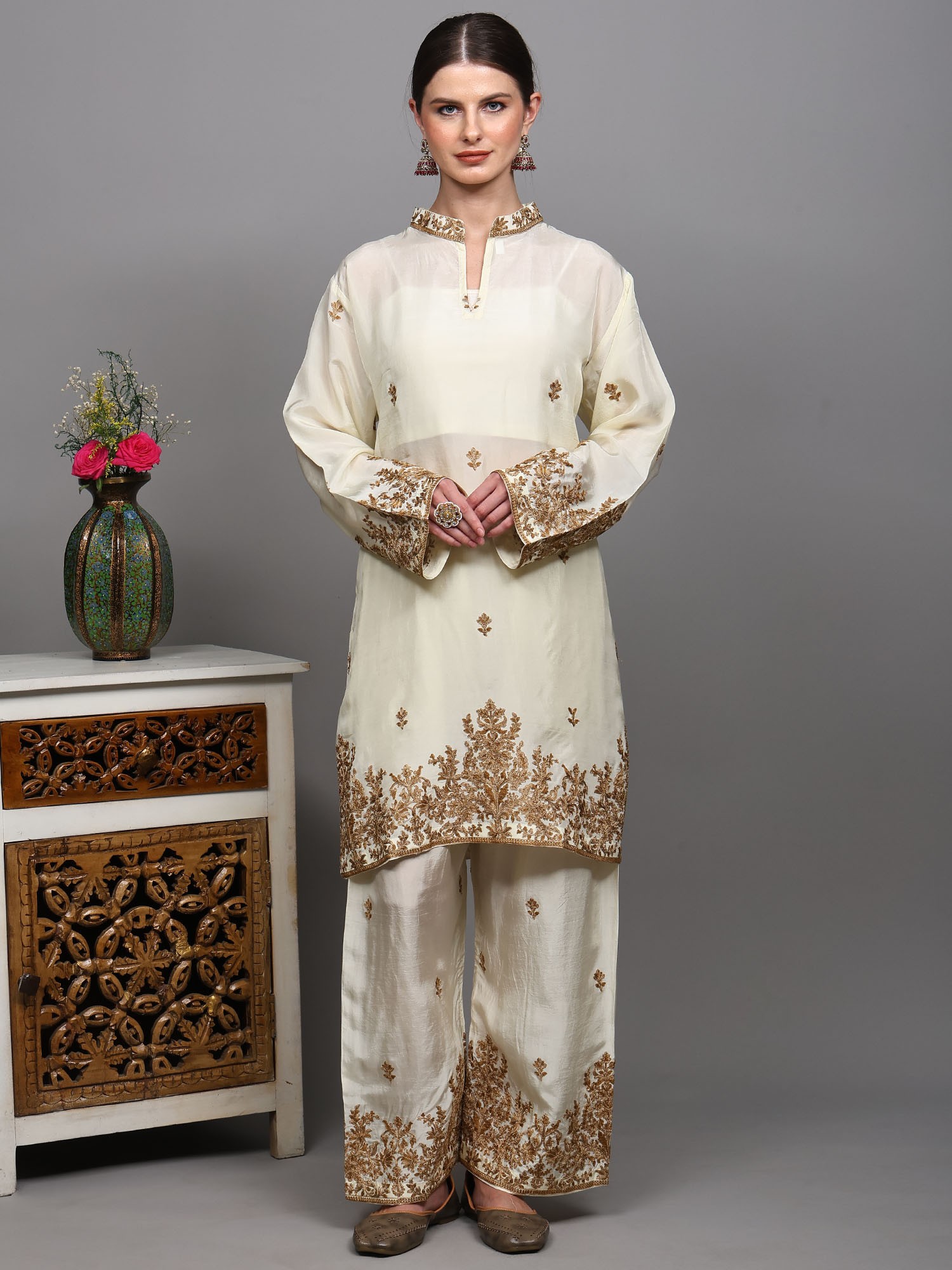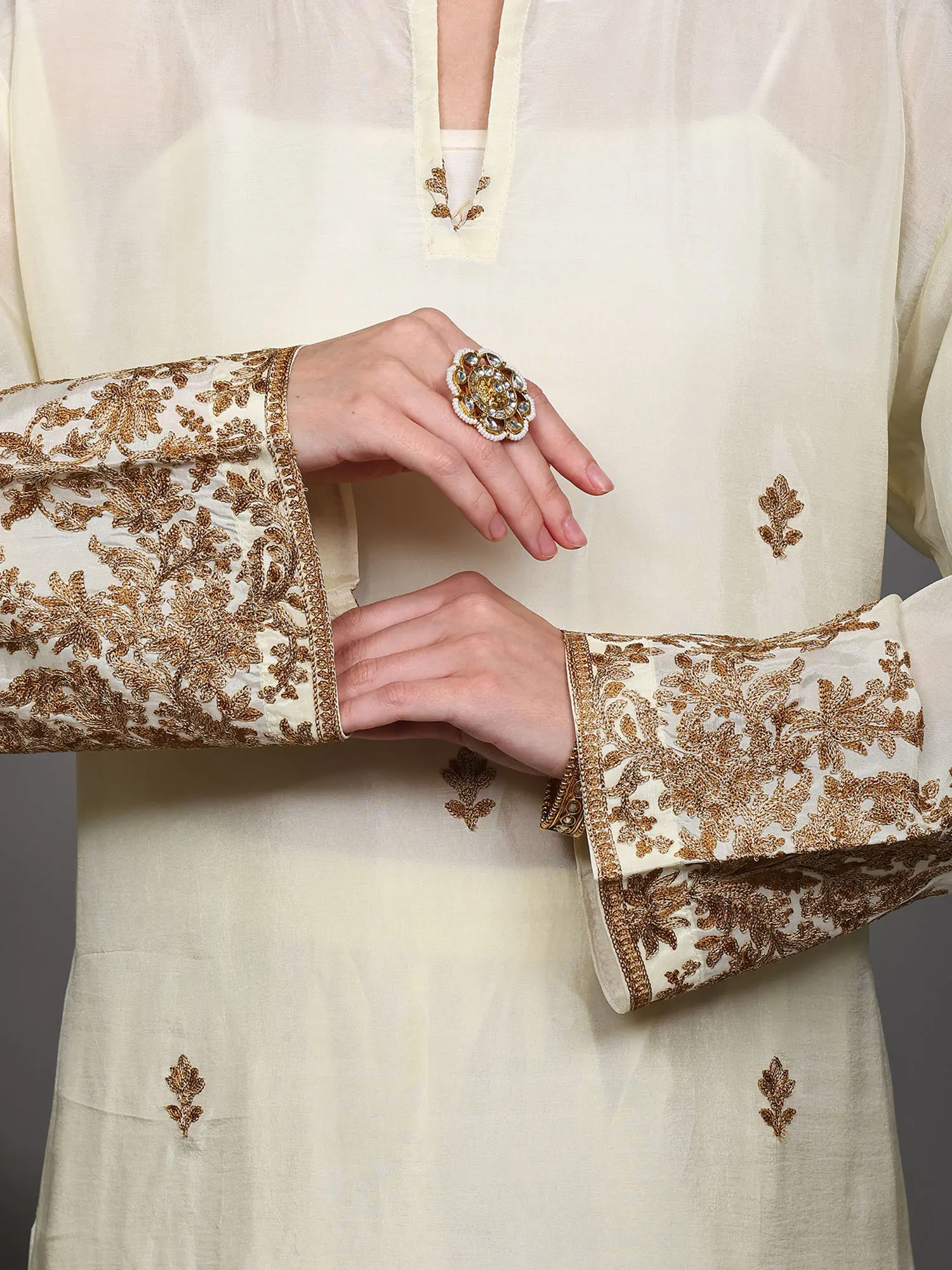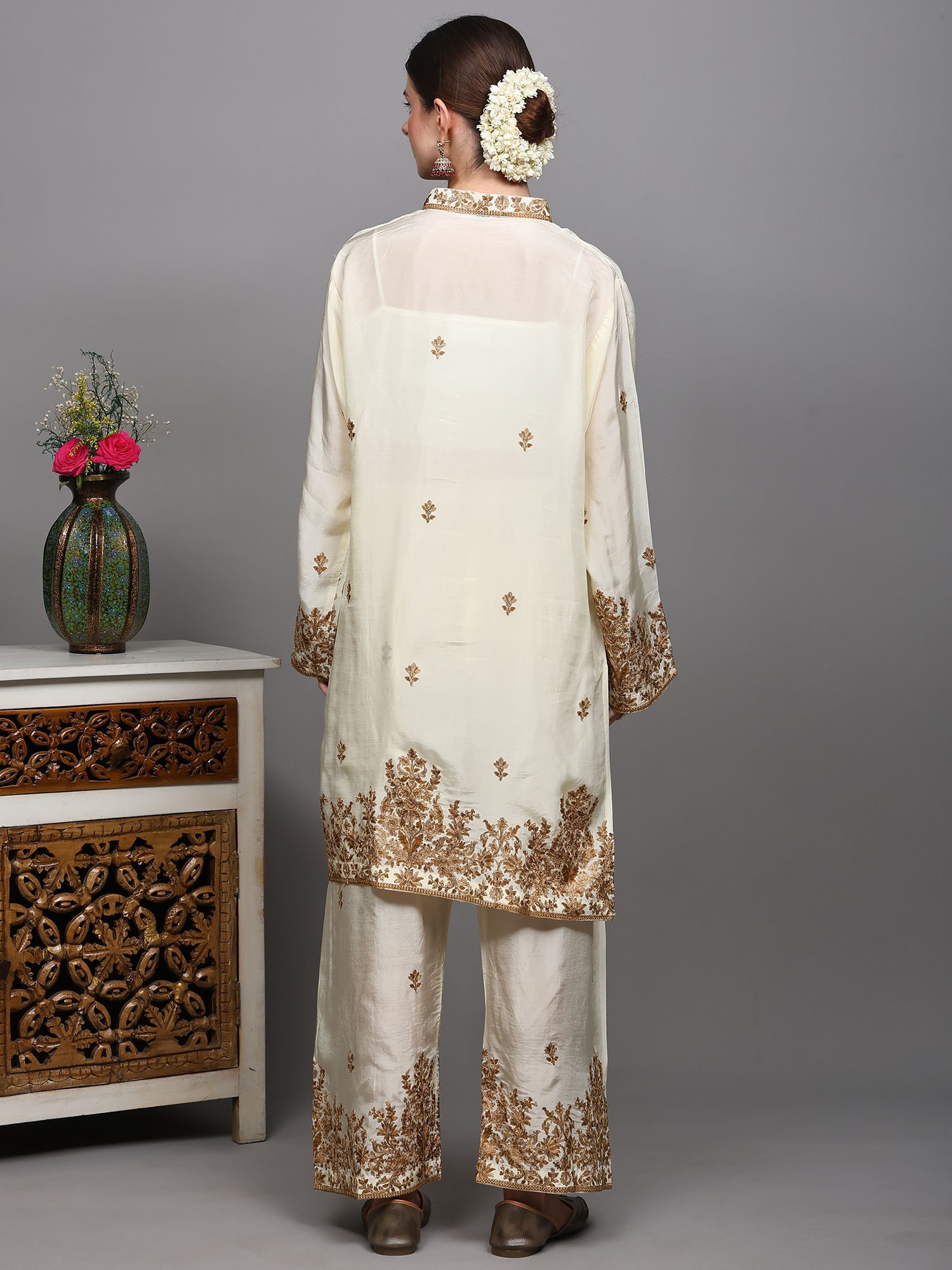 Spectra-Green Georgette Saree from Kashmir with Aari Embroidered Floral Motifs