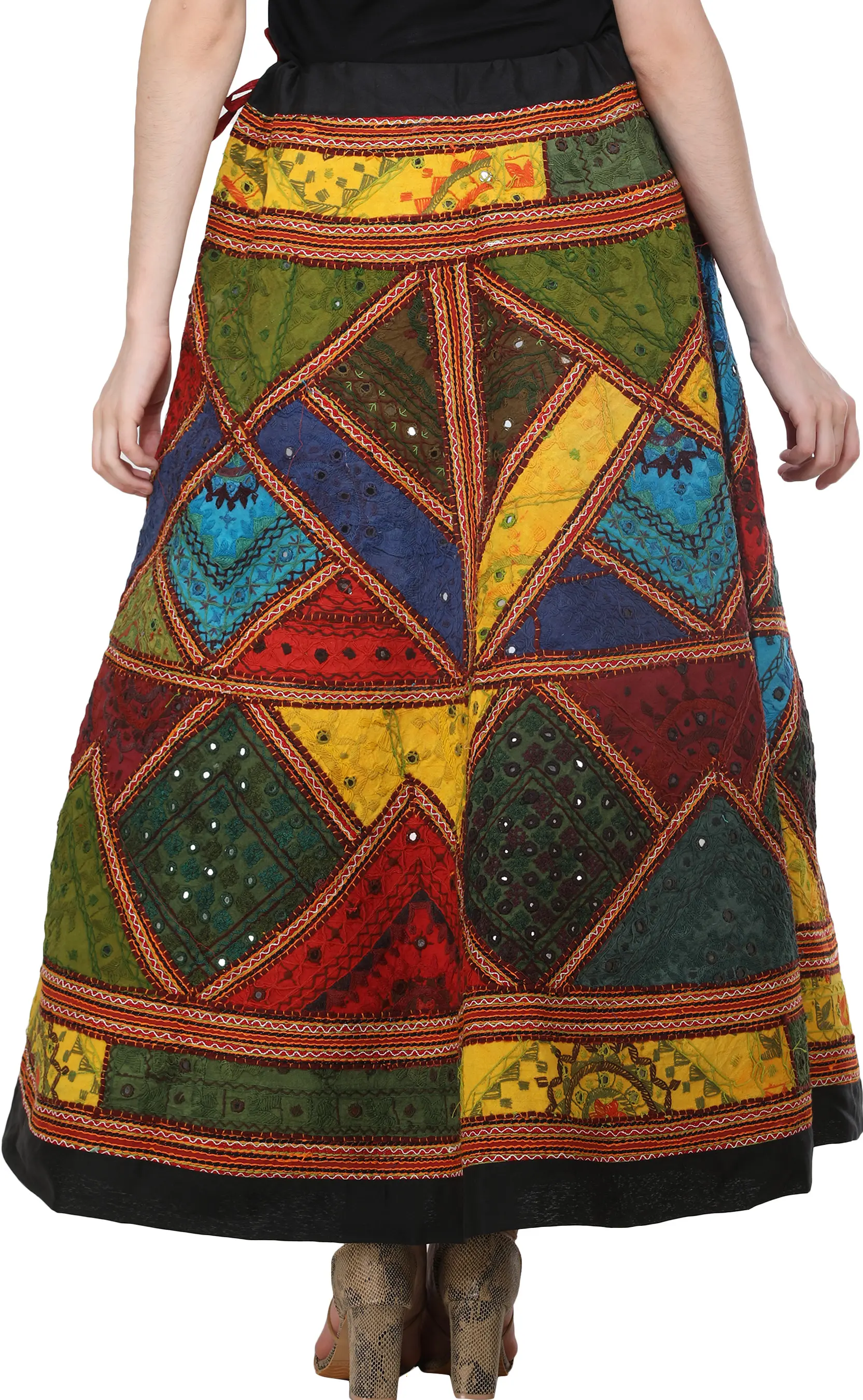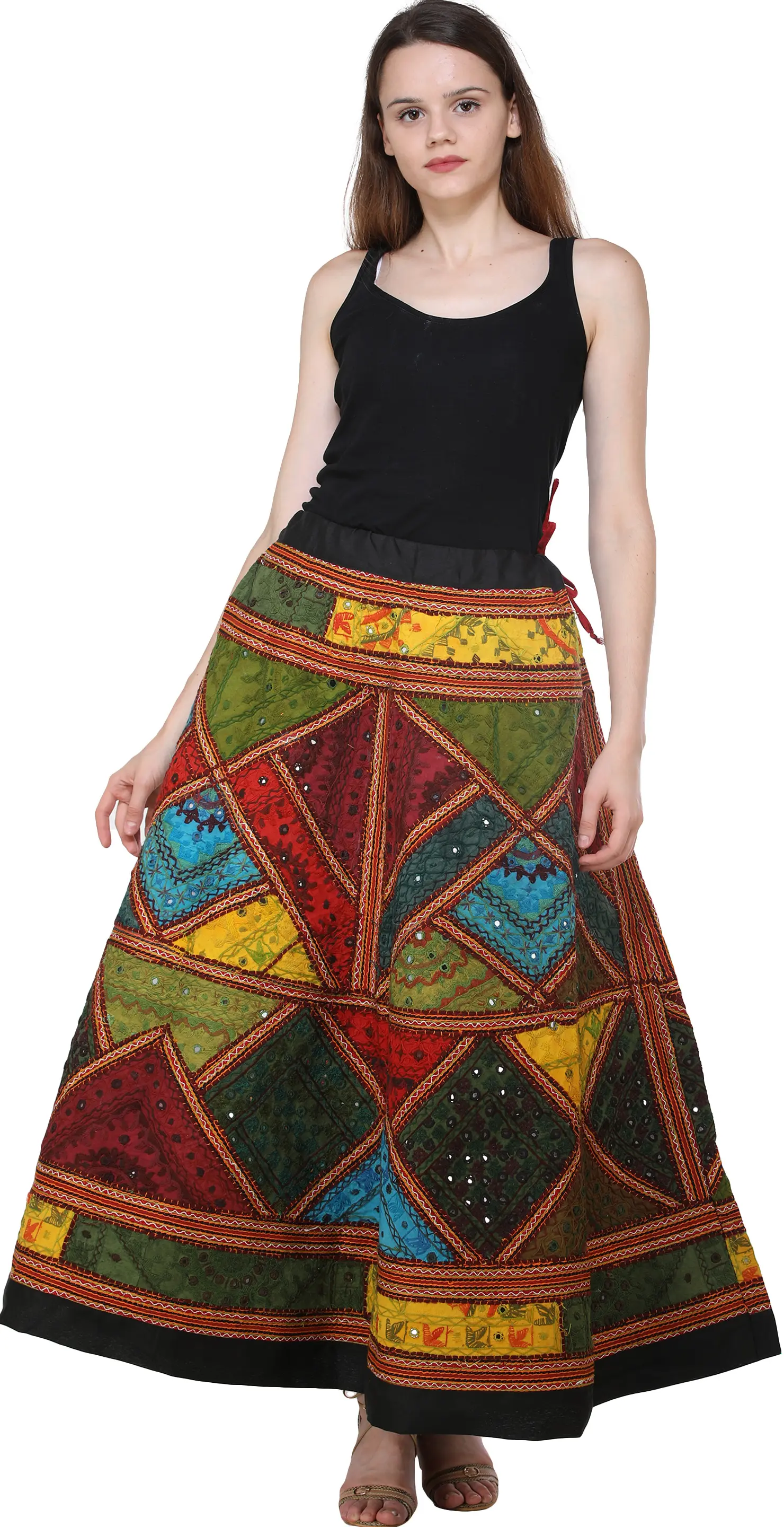 Ghagra Skirt from Gujarat with Embroidered Applique and Sequins