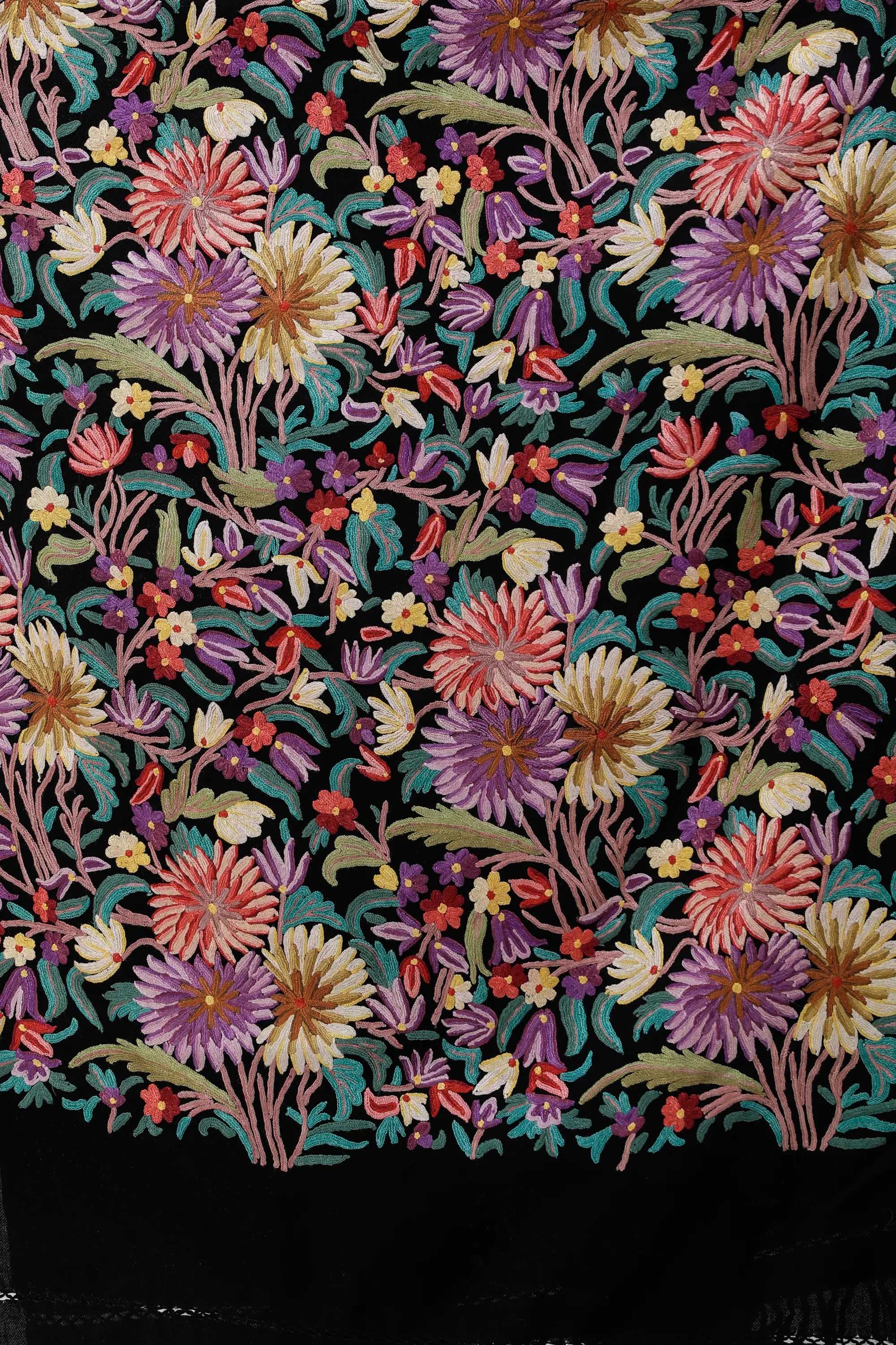 Stole from Kashmir with Aari Hand-Embroidered Bouquet of Flowers