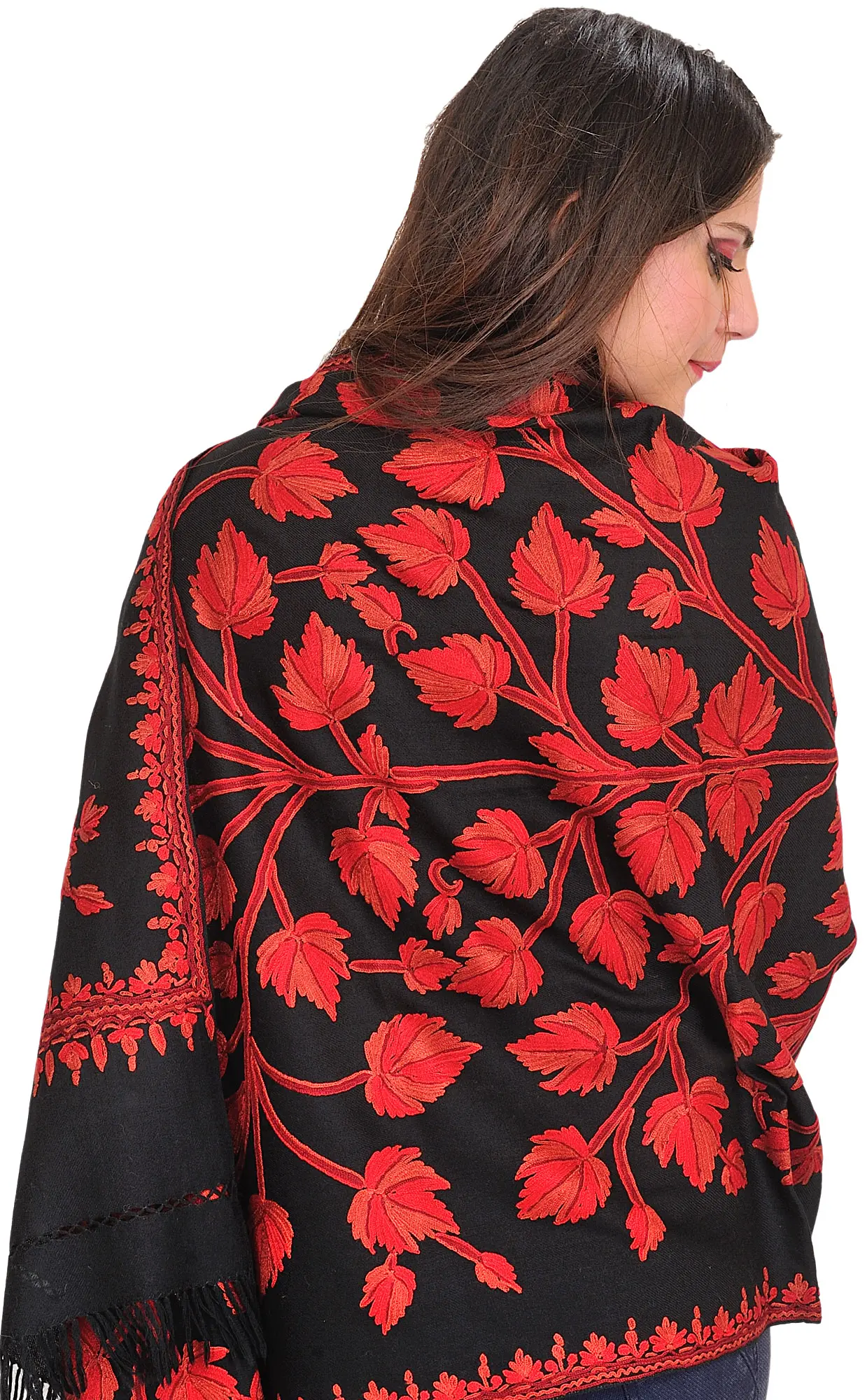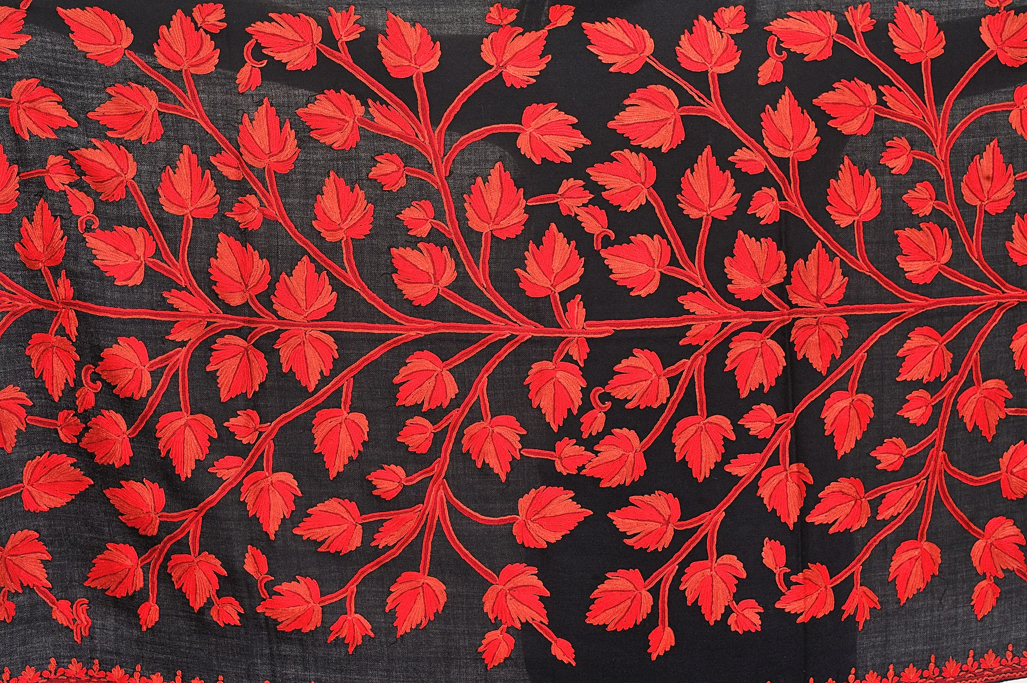 Jet-Black Stole from Kashmir with Aari Hand-Embroidered Foliage