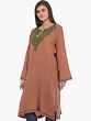 Shifting-Sand Wool Phiran with Aari Embroidery on Neck and Side Pockets from Kashmir