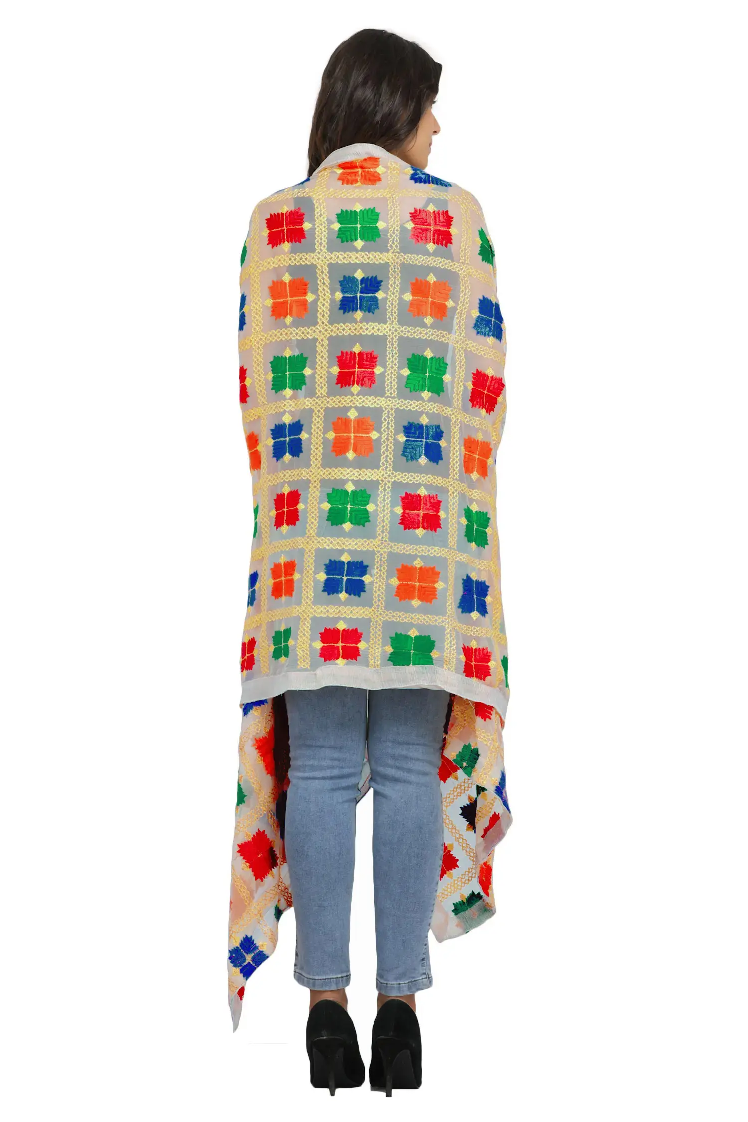 Phulkari Dupatta from Punjab with Multicolor Thread Embroidery All-Over