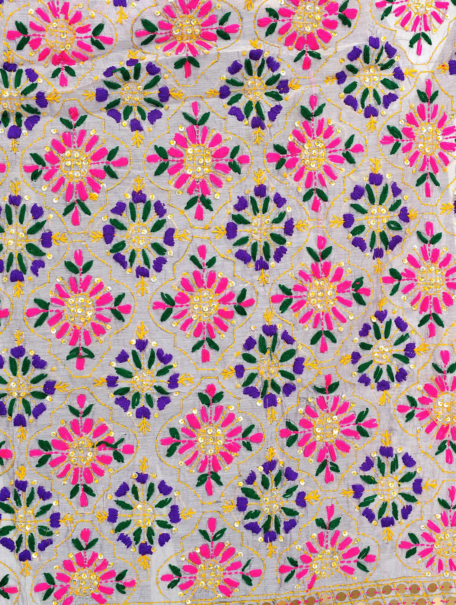 Star-White Phulkari Dupatta with Beads work and Multicolor Embroidery from Amritsar