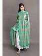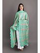 The Phulkari Dupatta from Punjab is a canvas of rich traditions. With multicolored geometric patterns and a beaded Zari border, it seamlessly blends cultural heritage with today's style. The vibrant shades and intricate handwork tell a story of Punjab's artistic legacy, which continues to be cherished in modern fashion. This piece effortlessly bridges the gap between time-honored craftsmanship and contemporary trends.