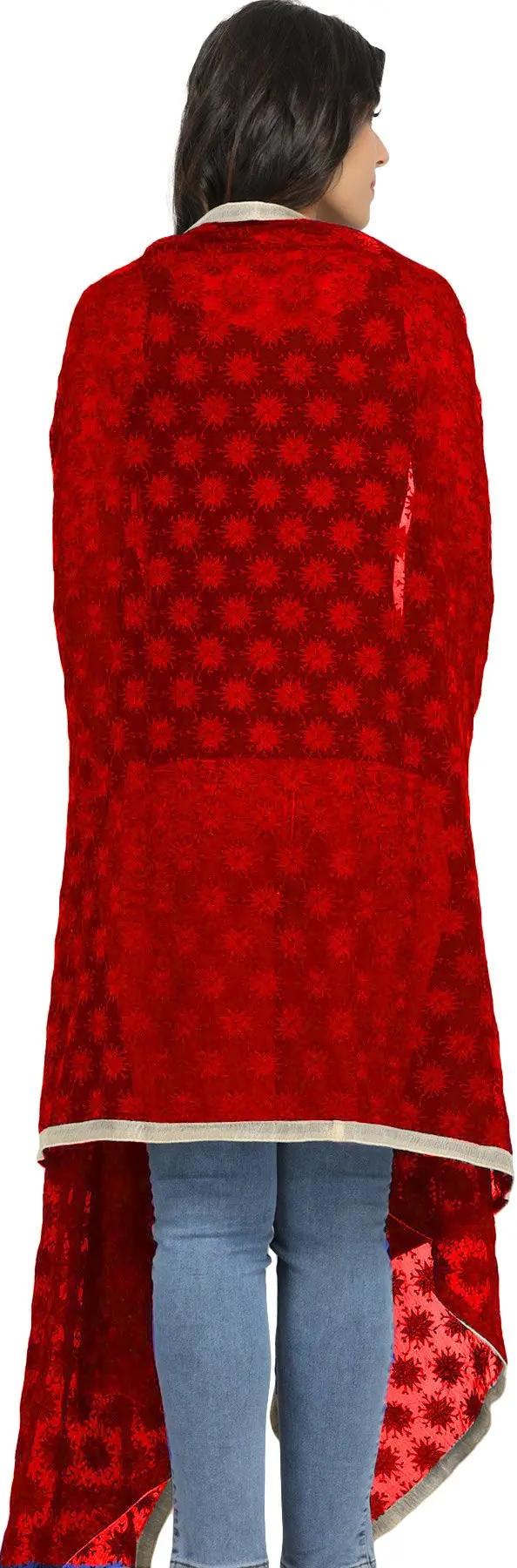 Phulkari Dupatta from Punjab with Embroidery All-Over