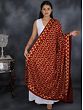 Phulkari literally means embroidered with florals, but it has now evolved to refer to a distinctive style of embroidery endemic to the Punjab region. Few dupattas constitute more of a Punjabi stentorian than this one, featuring extensive phulkari work across the silk, that also in fetching colour combinations. The bits of glimmering sequins stitched into the fabric add the much-needed glamour, which only goes to show how beautifully this piece would complement your outfit.