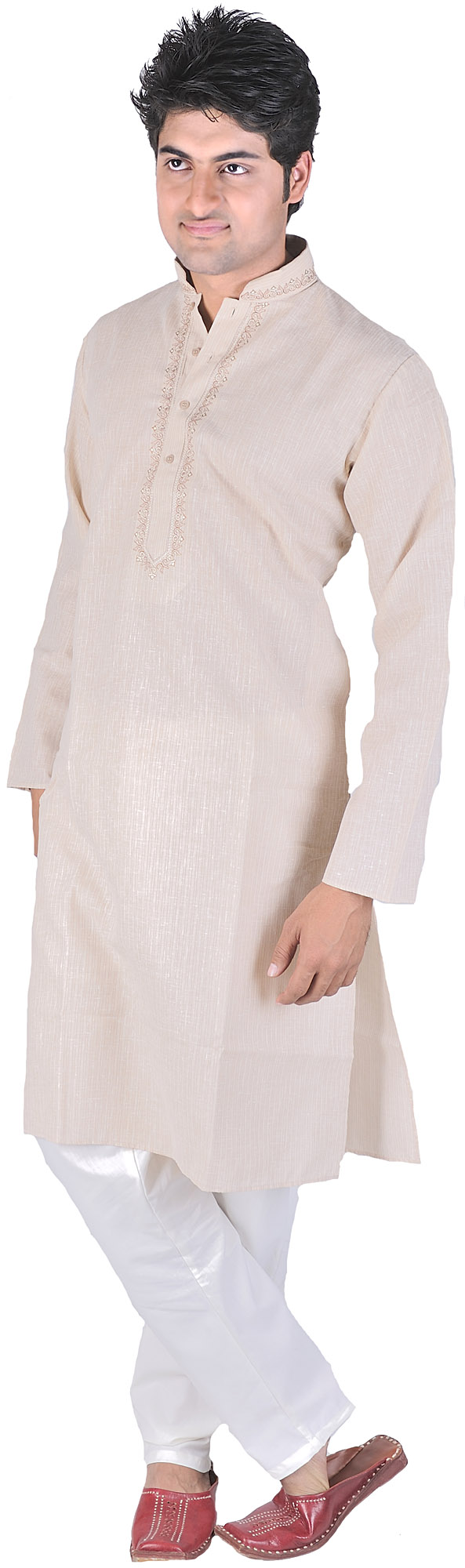 Kurta Pajama with Embroidery on Neck and Dotted Stripes