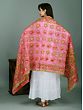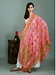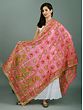 Pink-Flambe Silk Phulkari Dupatta with Floral Embroidery from Punjab