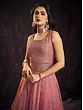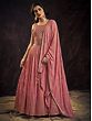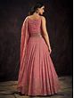 Peach Georgette Sequins Embroidered Floral Vine Motif Anarkali Style Gown With Butti Motif Dupatta