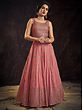 Light-Pink Soft Net Thread Embroidered Lehenga Choli with Sheer Dupatta