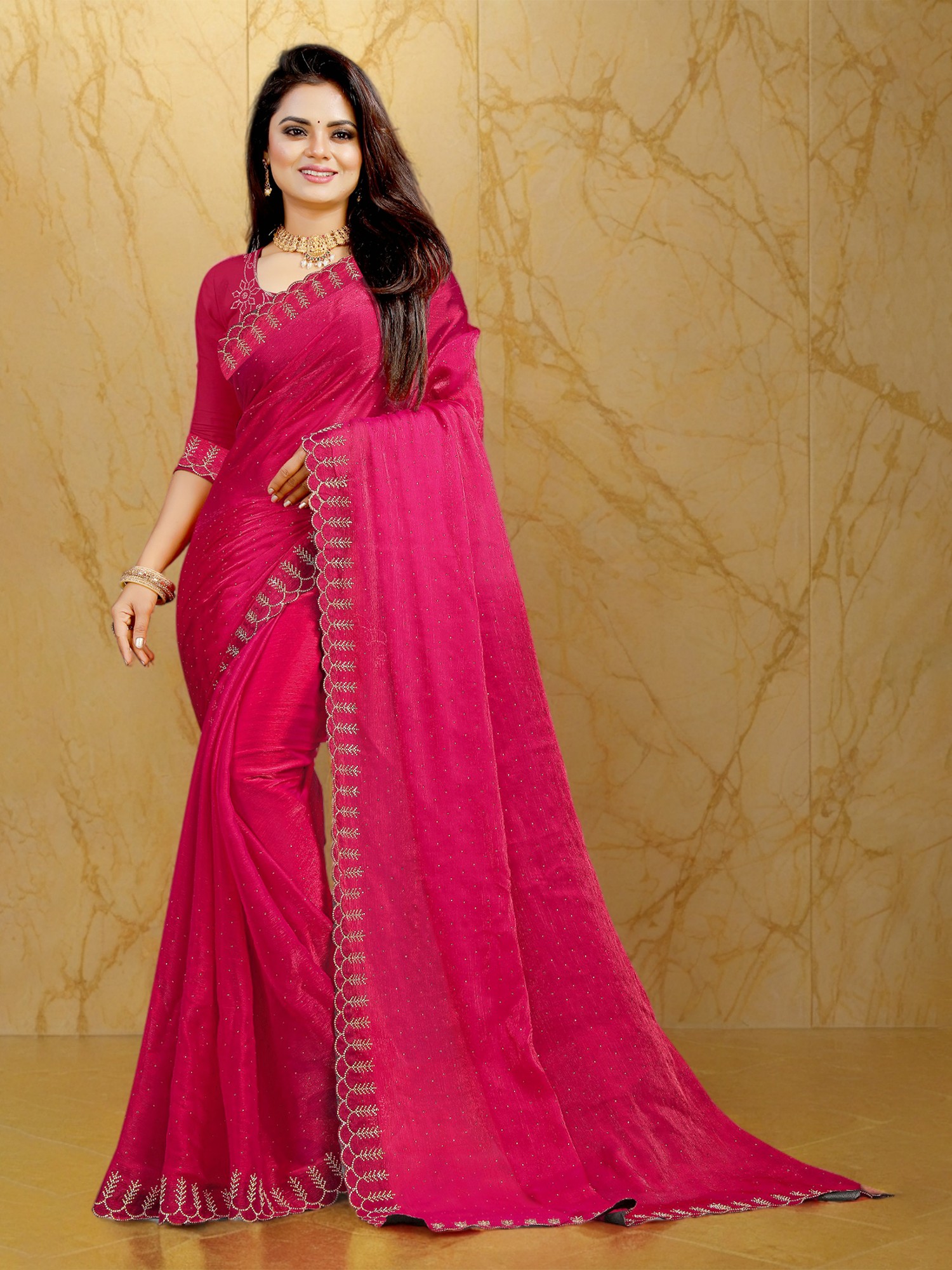 Pure Dola Viscose Silk Sequins And Embroidery Work Embellished Border Fancy Saree