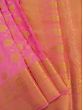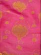 The field of the saree is enriched with fine Butas and butis created with golden threads. The border of the saree is embellished with supple Phool bel or floral vine that adds to the feminine charm of pink.