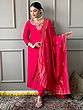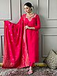 Pink-Red Embroidery Work Elegant Festive Wear Viscose Chanderi Kurta Set With Matching Dupatta