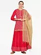 Indian Wedding Pink Velvet Kurti Sharara Set With Golden Embroidery And Chanderi Dupatta