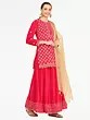 Step into a world of refined beauty and exquisite craftsmanship with this stunning ensemble. Designed for those who appreciate the finer things in life, this outfit is a testament to traditional Indian artistry blended with contemporary style. The rich, plush velvet fabric in a captivating pink hue provides a luxurious foundation, promising both comfort and a sophisticated drape. Its deep, vibrant tone is perfect for making a statement at any celebratory gathering, radiating warmth and festive cheer.