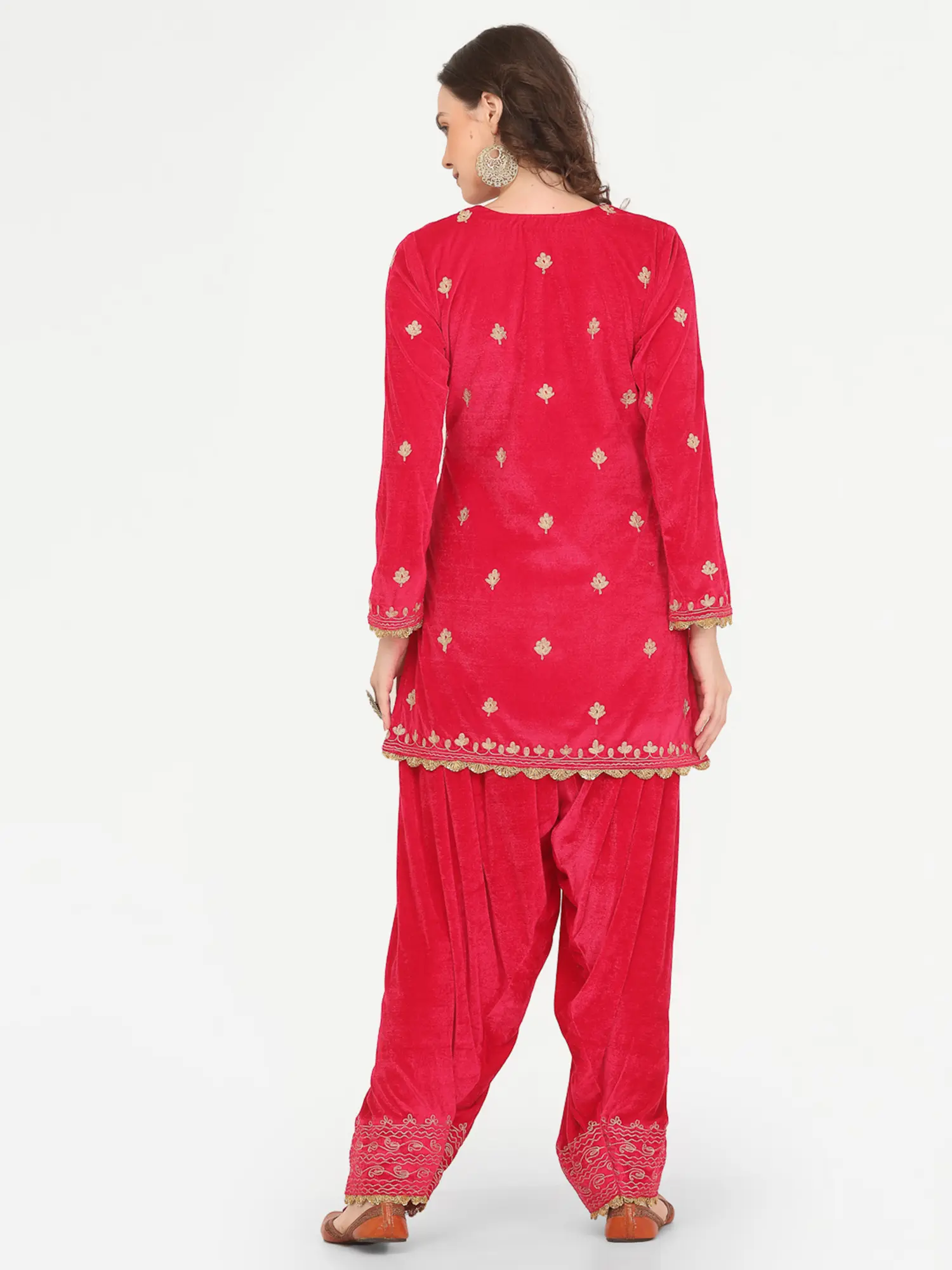 Velvet Patiala Salwar Suit With Multi Thread Embroidery And Sequin Detail Viscose Rayon Festive Ethnic Elegance