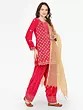Art-Silk Palazzo Salwar Kameez Suit with Round-Neck and Stripe Printed Dupatta