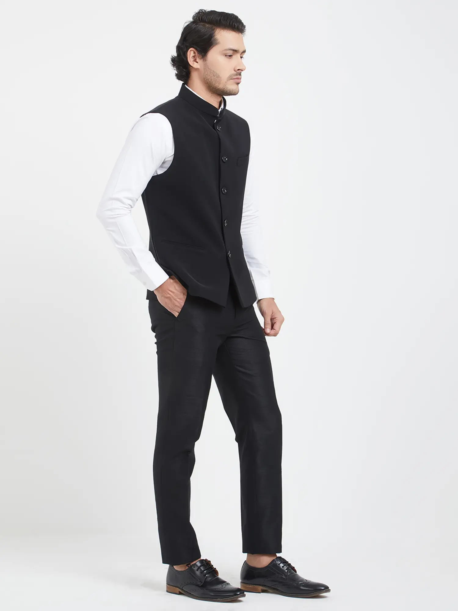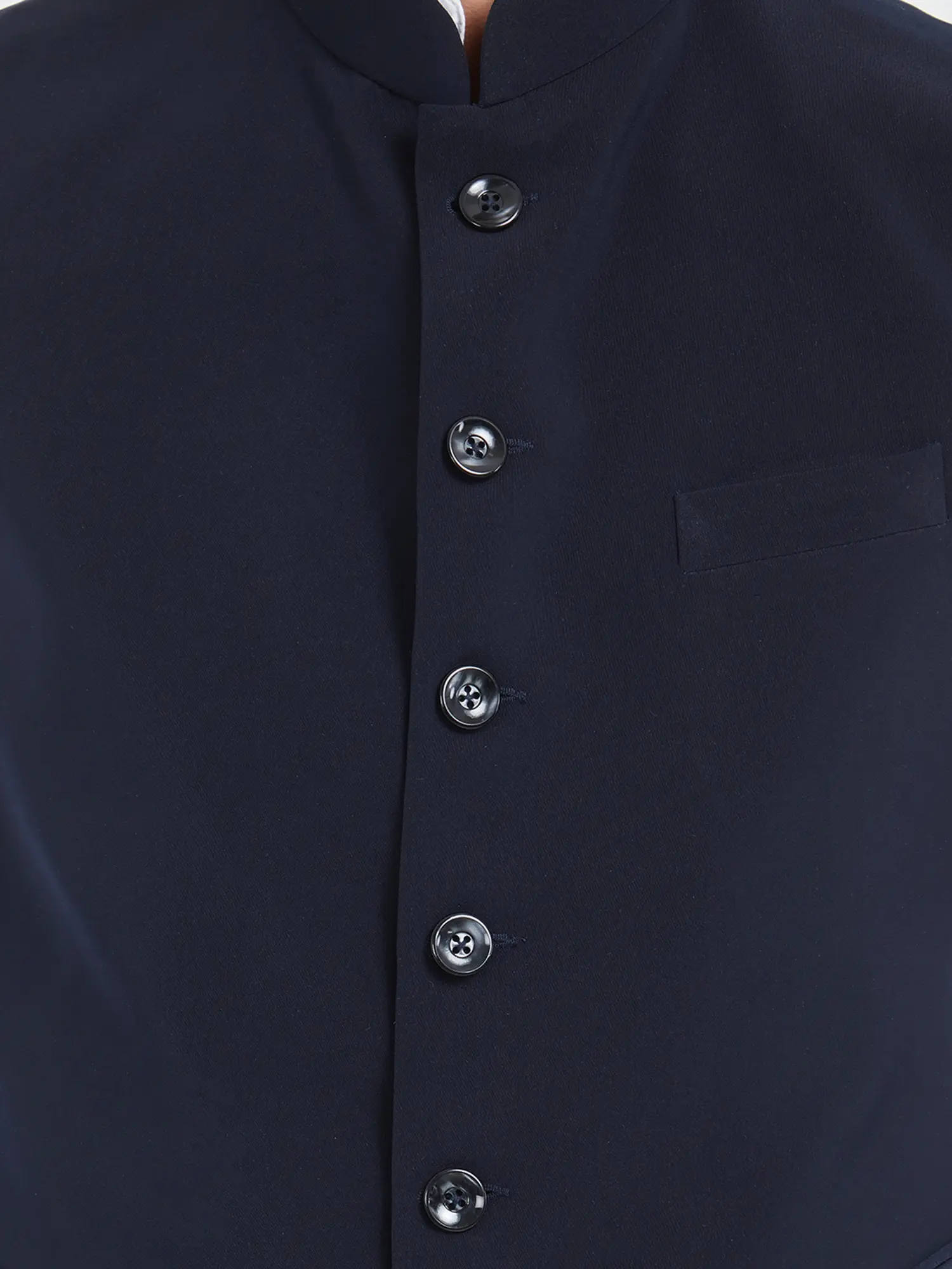 Plain Black Cotton Nehru Jacket for Men | Band Collar Waistcoat