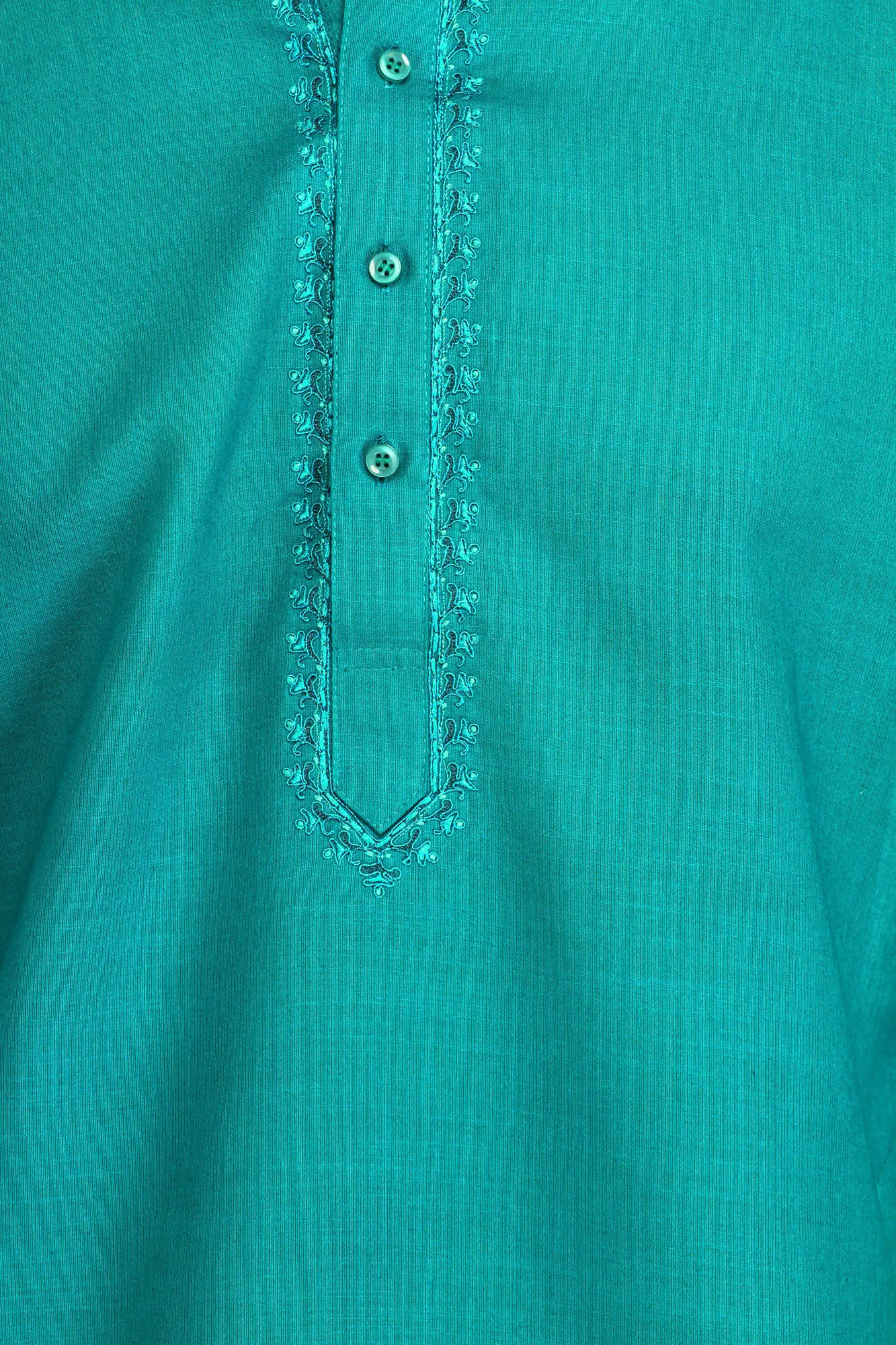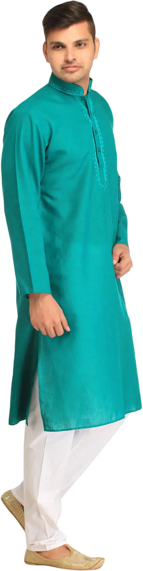 Embrace timeless fashion and relish the comfort of pure cotton with this “Kurta Pajama Set”. Crafted from pure cotton, this ensemble offers a relaxed fit, ideal for everyday wear. The subtle yet intricate thread embroidery on the neckline gives elegance and uniqueness to the attire, making it suitable for various occasions, from casual gatherings to festive celebrations. Its understated charm allows for easy accessorising, making it a wardrobe essential for those who appreciate simplicity with a hint of sophistication. This ensemble perfectly embodies the fusion of tradition and contemporary fashion.