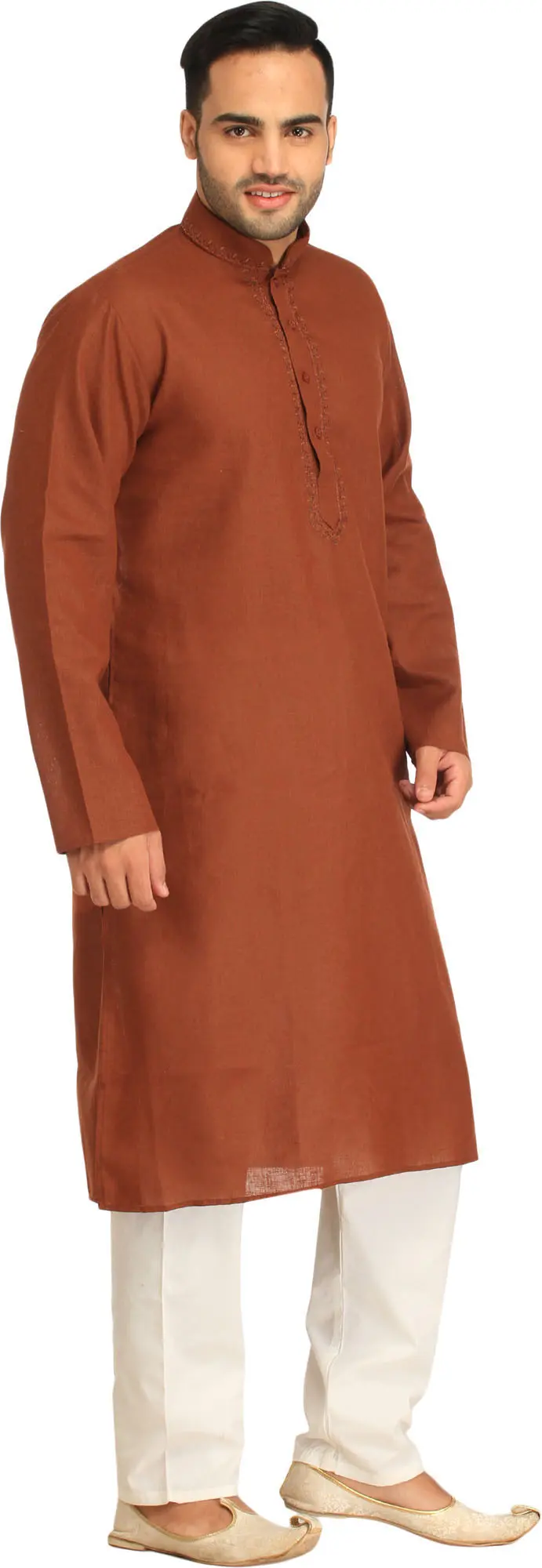 Embrace timeless fashion and relish the comfort of pure cotton with this “Kurta Pajama Set”. Crafted from pure cotton, this ensemble offers a relaxed fit, ideal for everyday wear. The subtle yet intricate thread embroidery on the neckline gives elegance and uniqueness to the attire, making it suitable for various occasions, from casual gatherings to festive celebrations. Its understated charm allows for easy accessorising, making it a wardrobe essential for those who appreciate simplicity with a hint of sophistication. This ensemble perfectly embodies the fusion of tradition and contemporary fashion.