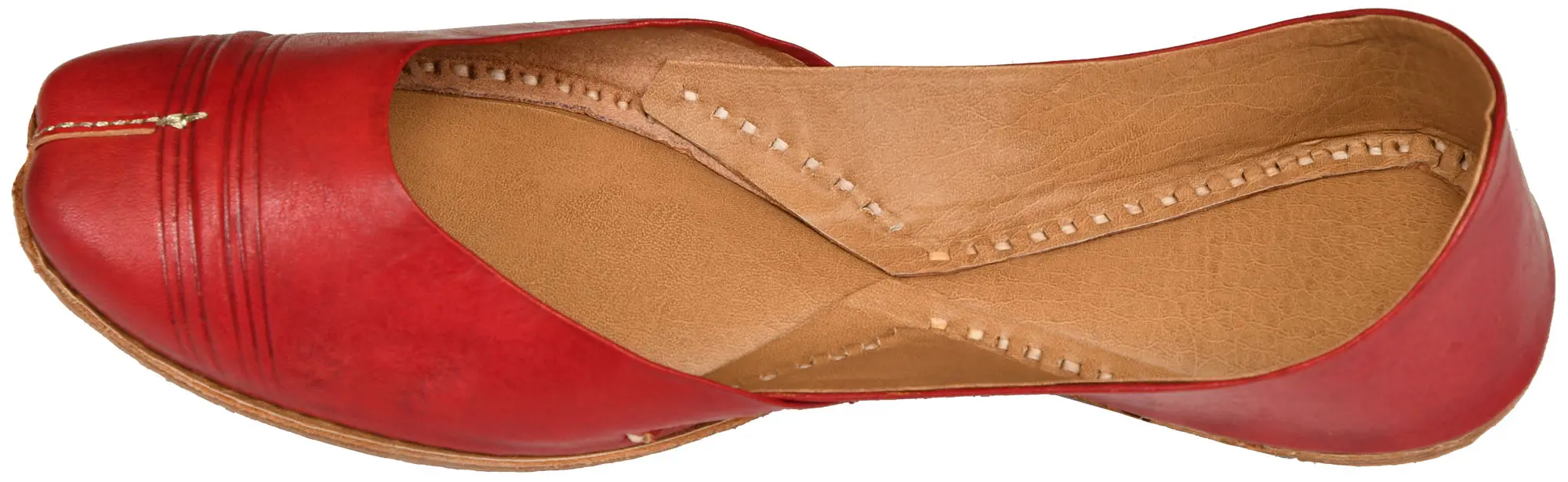 These Mojaris are designed to be your go-to footwear for a multitude of occasions. Their casual nature makes them a perfect complement to a wide range of outfits. Pair them with your favorite jeans and a crisp white shirt for a chic, relaxed look. Dress them up with a flowing kurta or a simple cotton dress for a touch of ethnic flair. They are also an excellent choice for complementing tailored trousers or even a casual skirt. The striking red color makes them a statement piece, capable of transforming an ordinary outfit into something truly special. Their slip-on design offers effortless wearability, making them ideal for those days when you need to be ready in an instant. Embrace the blend of tradition and modern style with these beautifully crafted leather Mojaris.