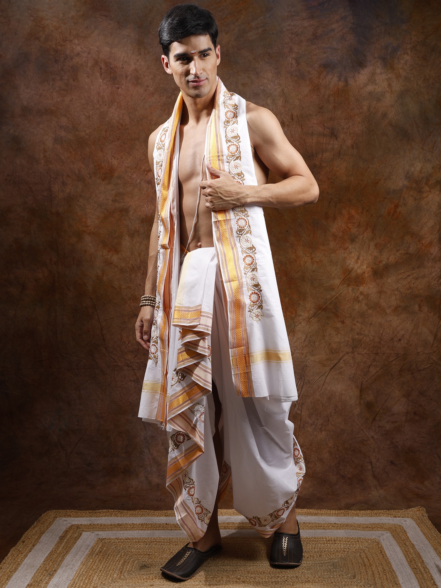Embrace Timeless Elegance: The Pure Cotton Dhoti and Angavastram Set