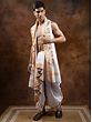 Off-White Plain Drape Dhoti and Angavastram Set with Striped Border