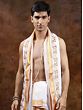 Plain Dhoti and Angavastram Set with Striped Border from ISKCON Vrindavan by BLISS