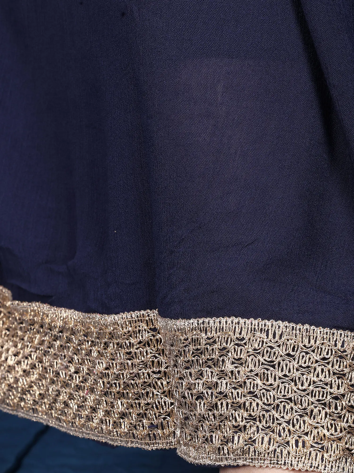 Blue and Red Embroidered Parallel Salwar Suit with Digital-Printed Dupatta