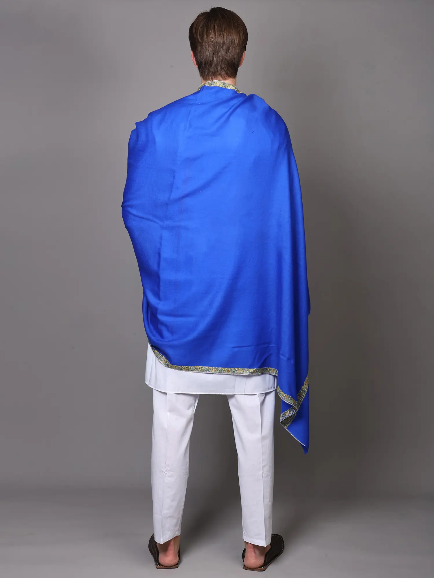 Lavender-Blue Woolen Sozni Border Shawl from Kashmir