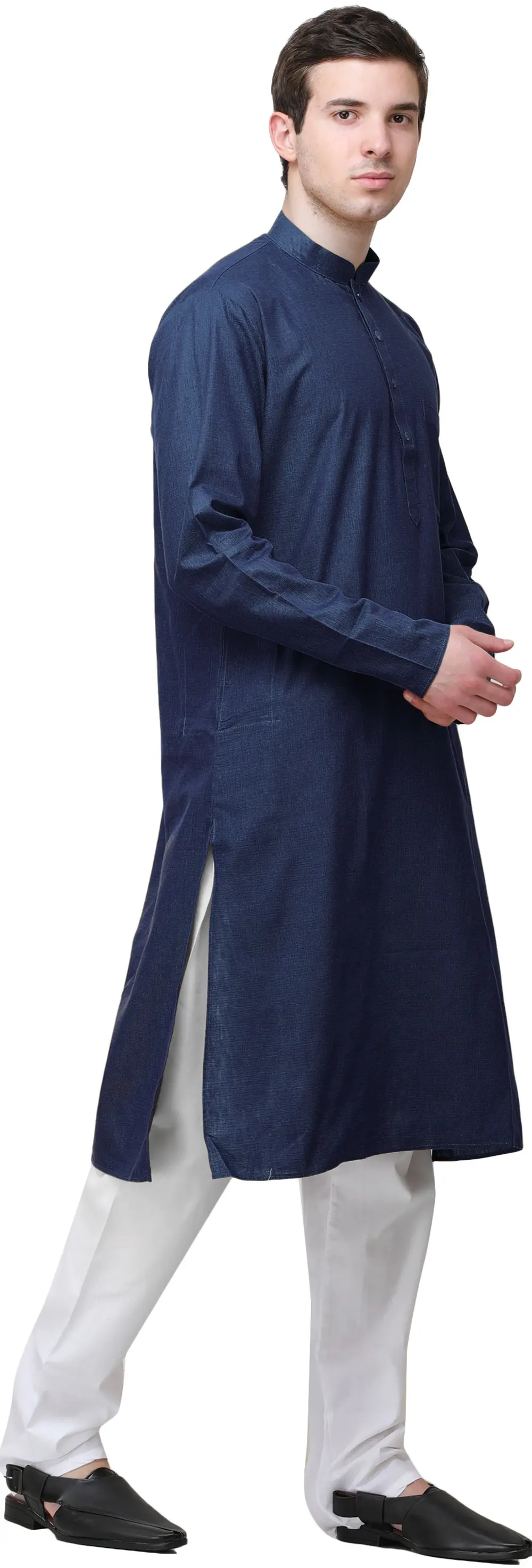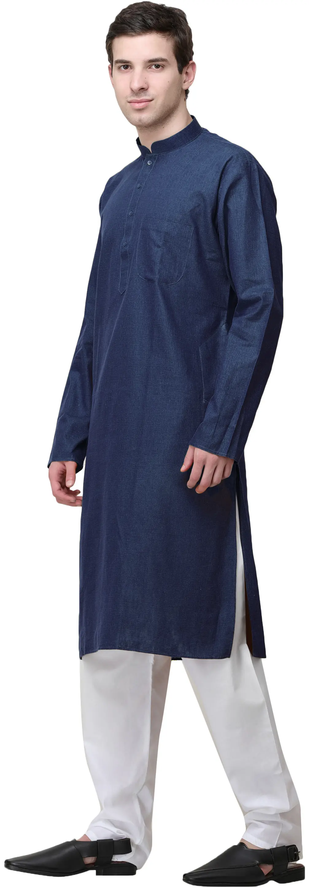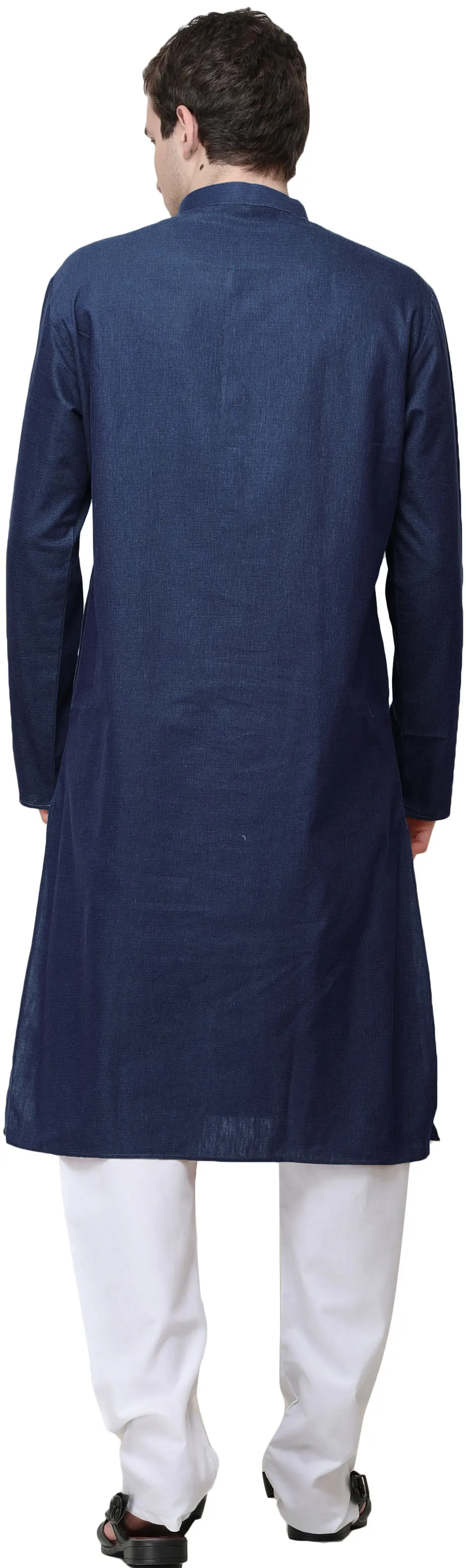 Plain Pure Cotton Kurta Pajama with Embroidery on Neck