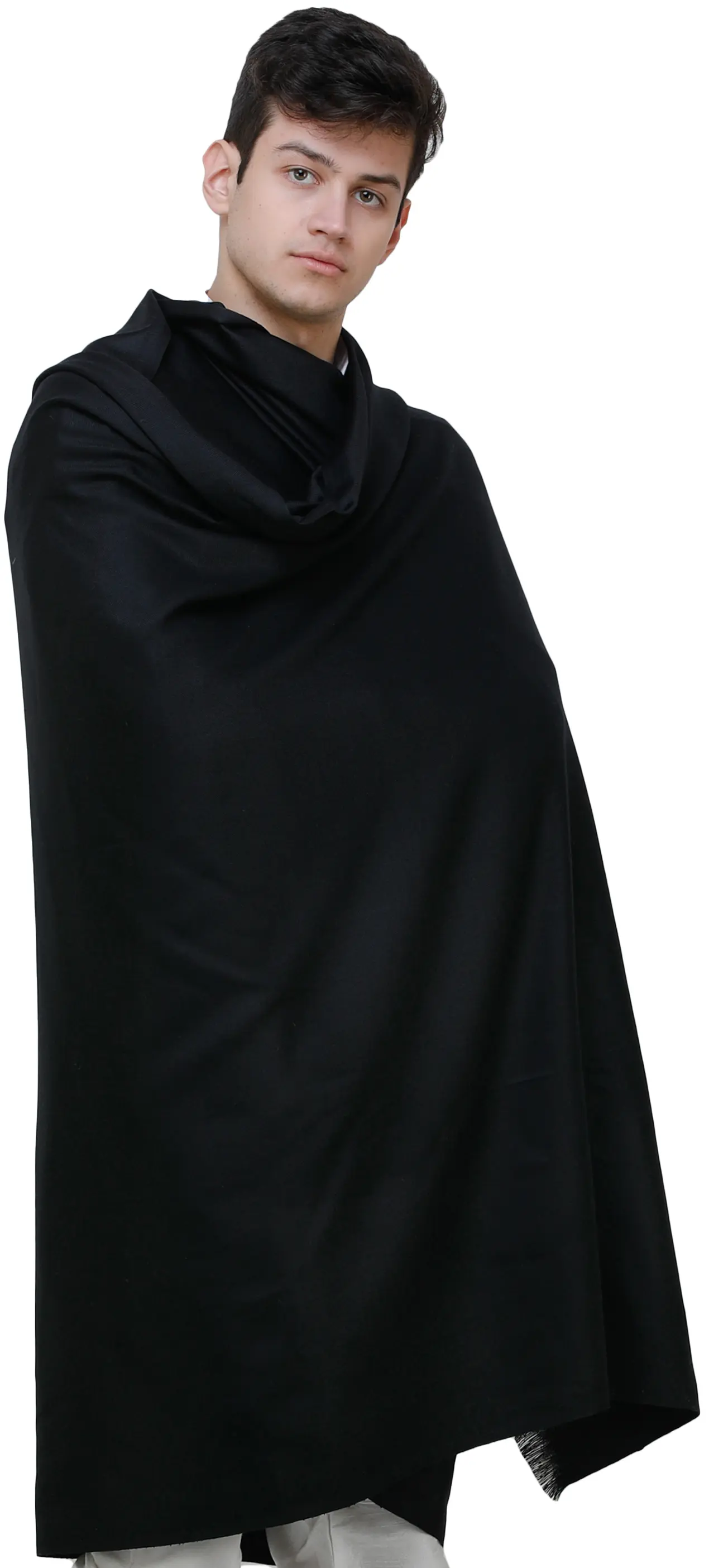 Pirate-Black Men's Shawl from Amritsar with Needle Embroidery on Border