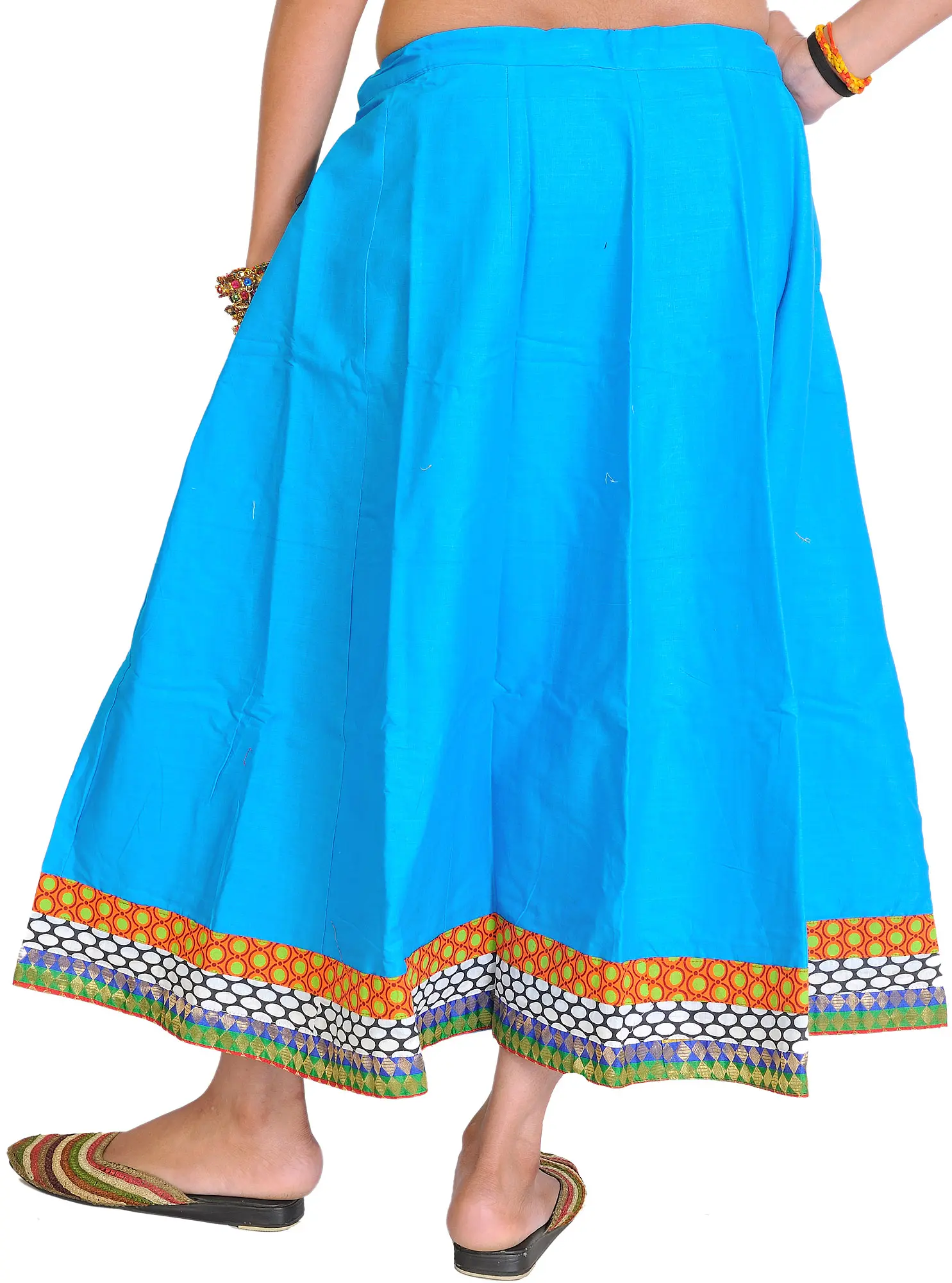 Made from pure cotton, this skirt is a canvas of sophistication. Adorned with a mesmerizing patch border, each thread tells a story of tradition and modernity intertwining seamlessly.