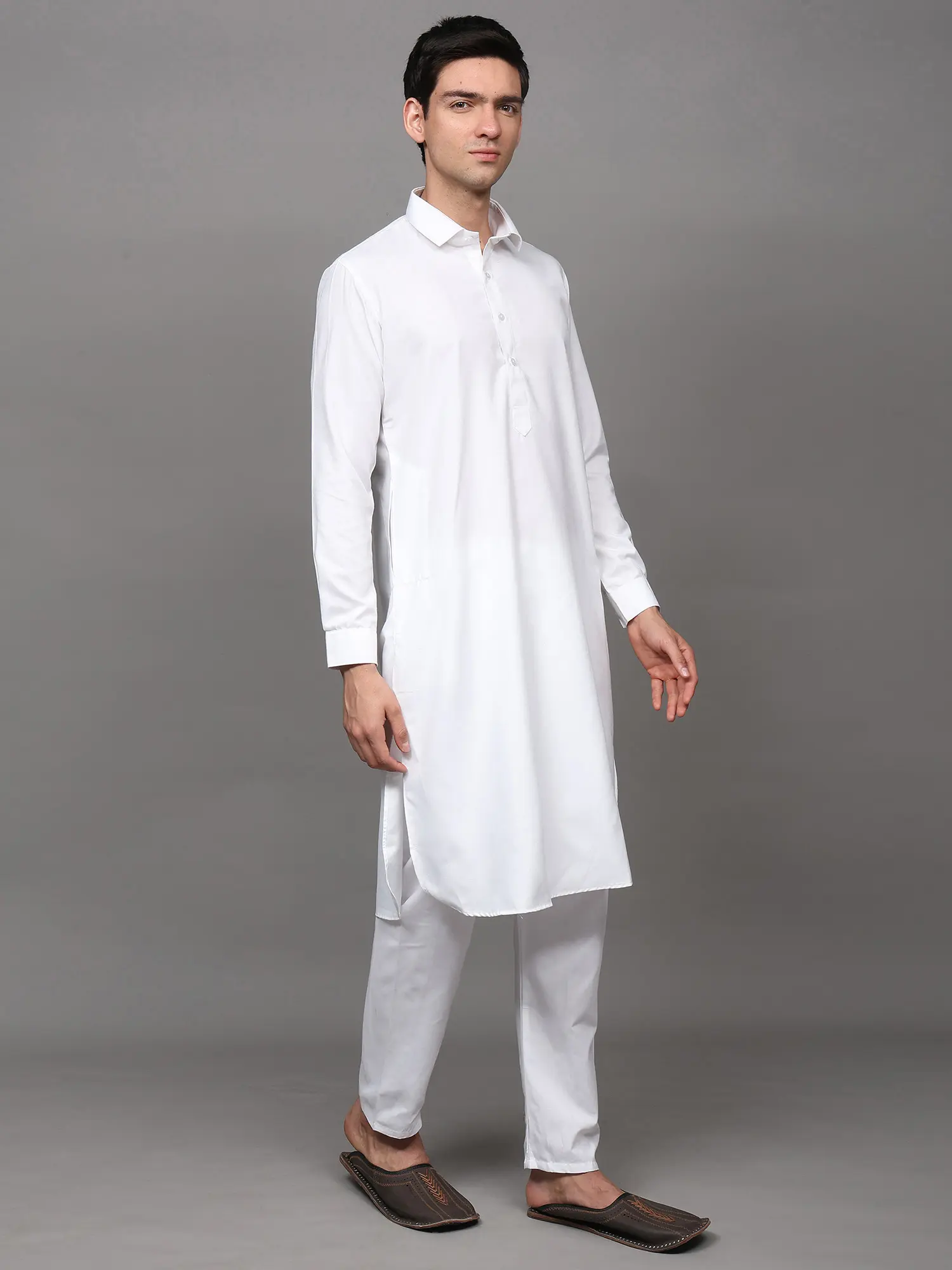 Plain Pathani Kurta Salwar Set with Piping