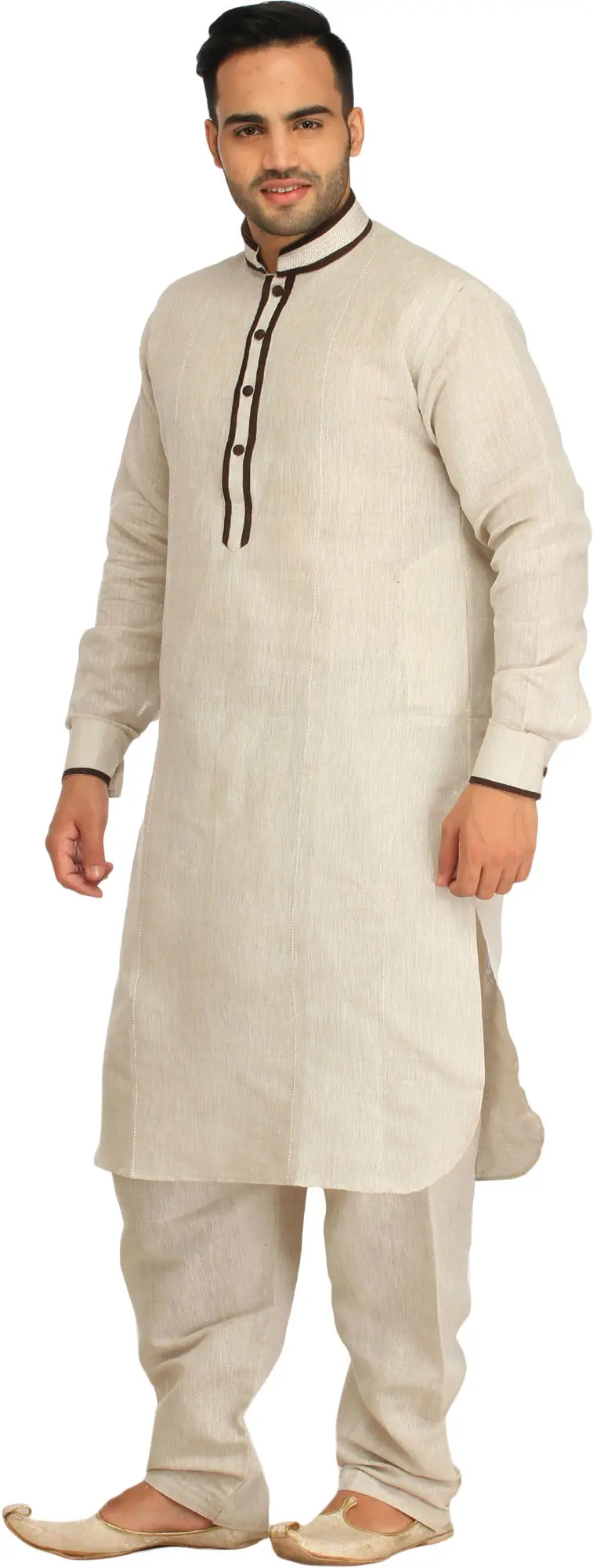 Cotton Linen Traditional Pathani Kurta Pajama with Prayer Cap