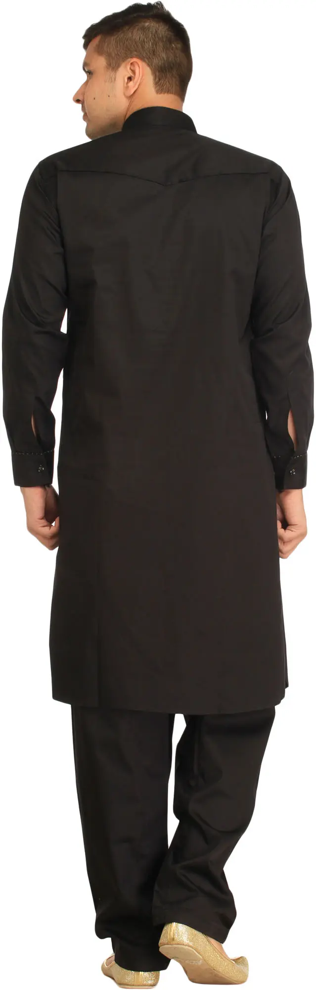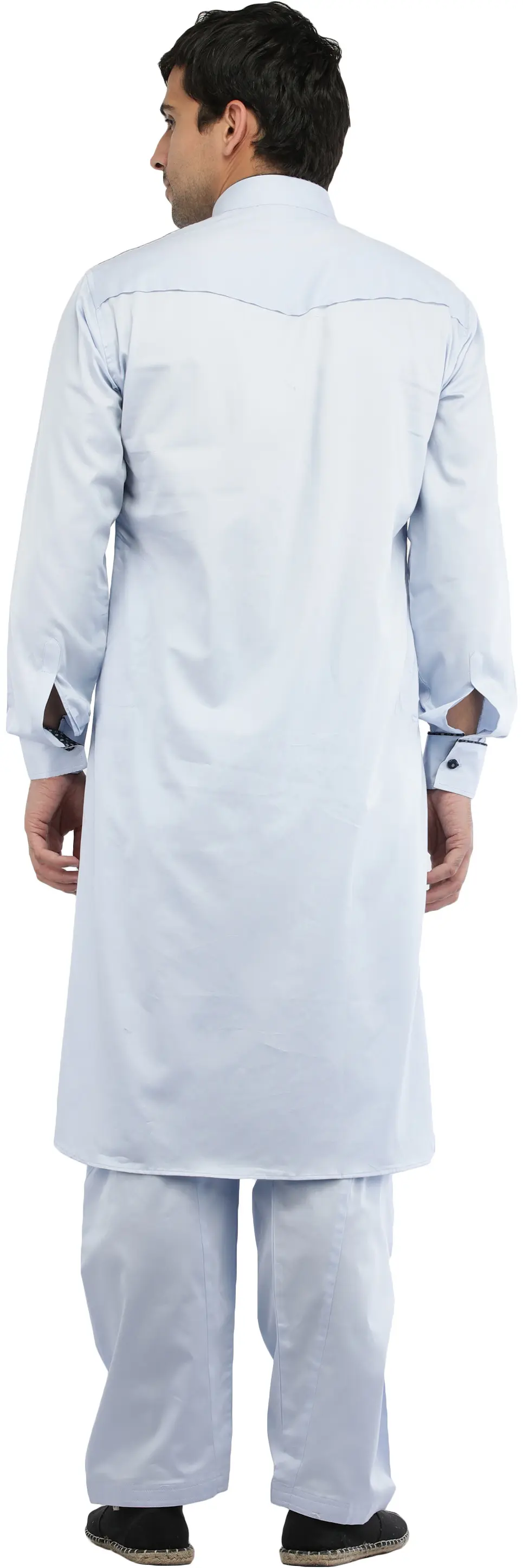 With this Plain Pathani Kurta Salwar Set, which has beautiful piping work, you may immerse yourself in enchanting beauty. This suit, made from pure cotton, flawlessly balances comfort and style. The breathable fabric provides a comfortable fit, making it suitable for any occasion.