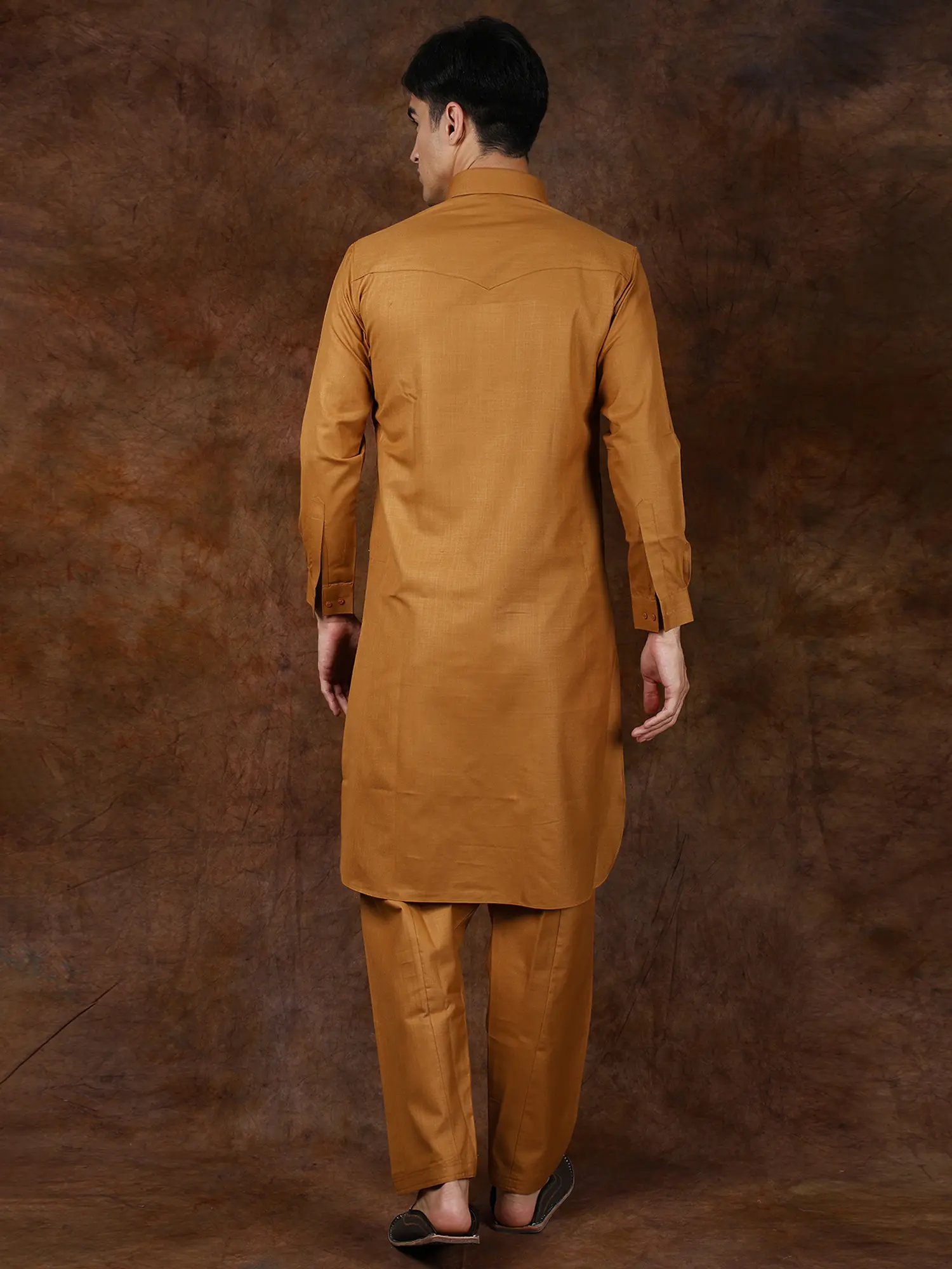 Burnt-Maroon Pathani Style Kurta Pajama Set with Front Pocket