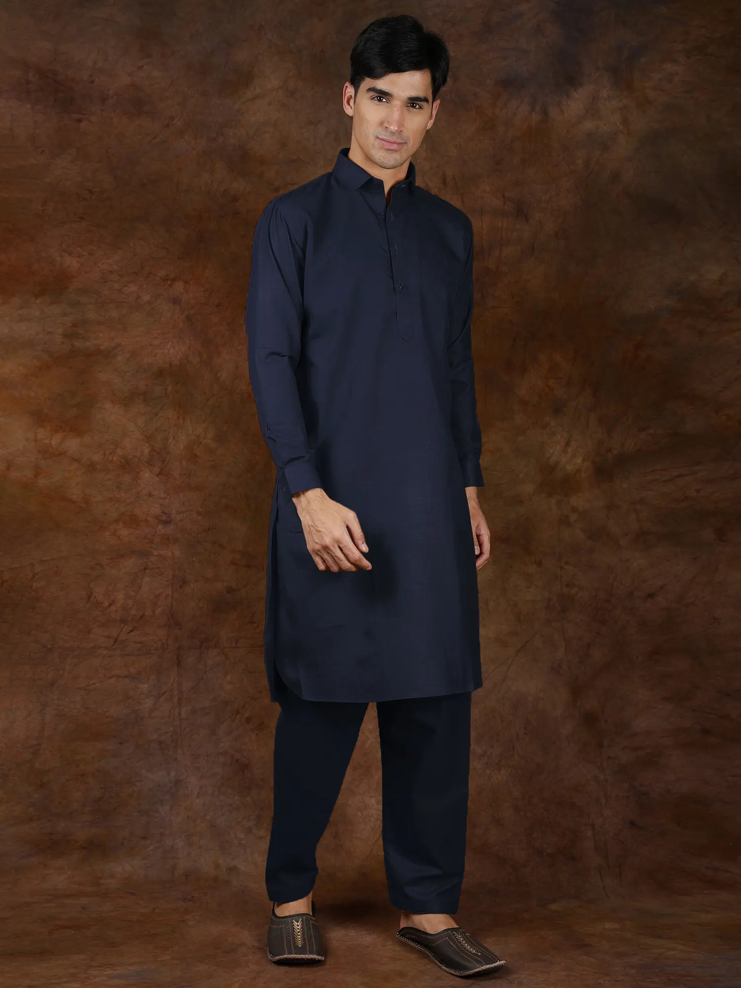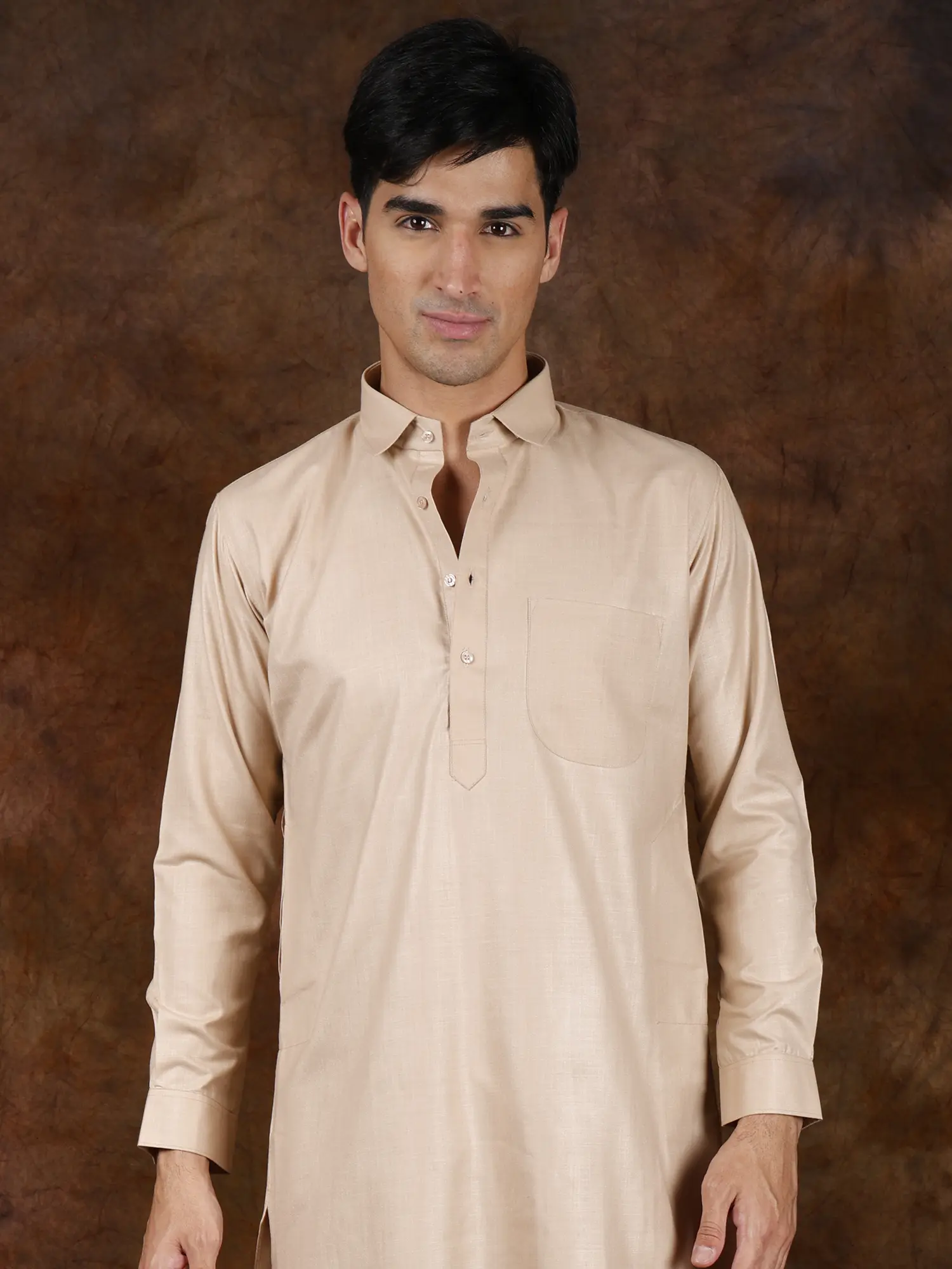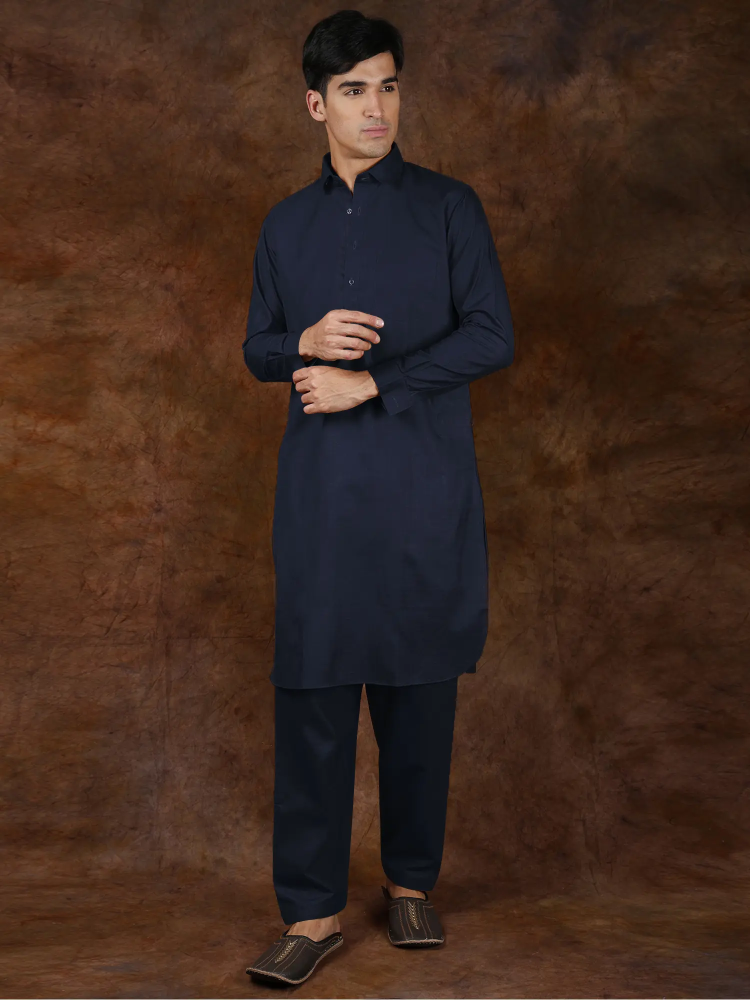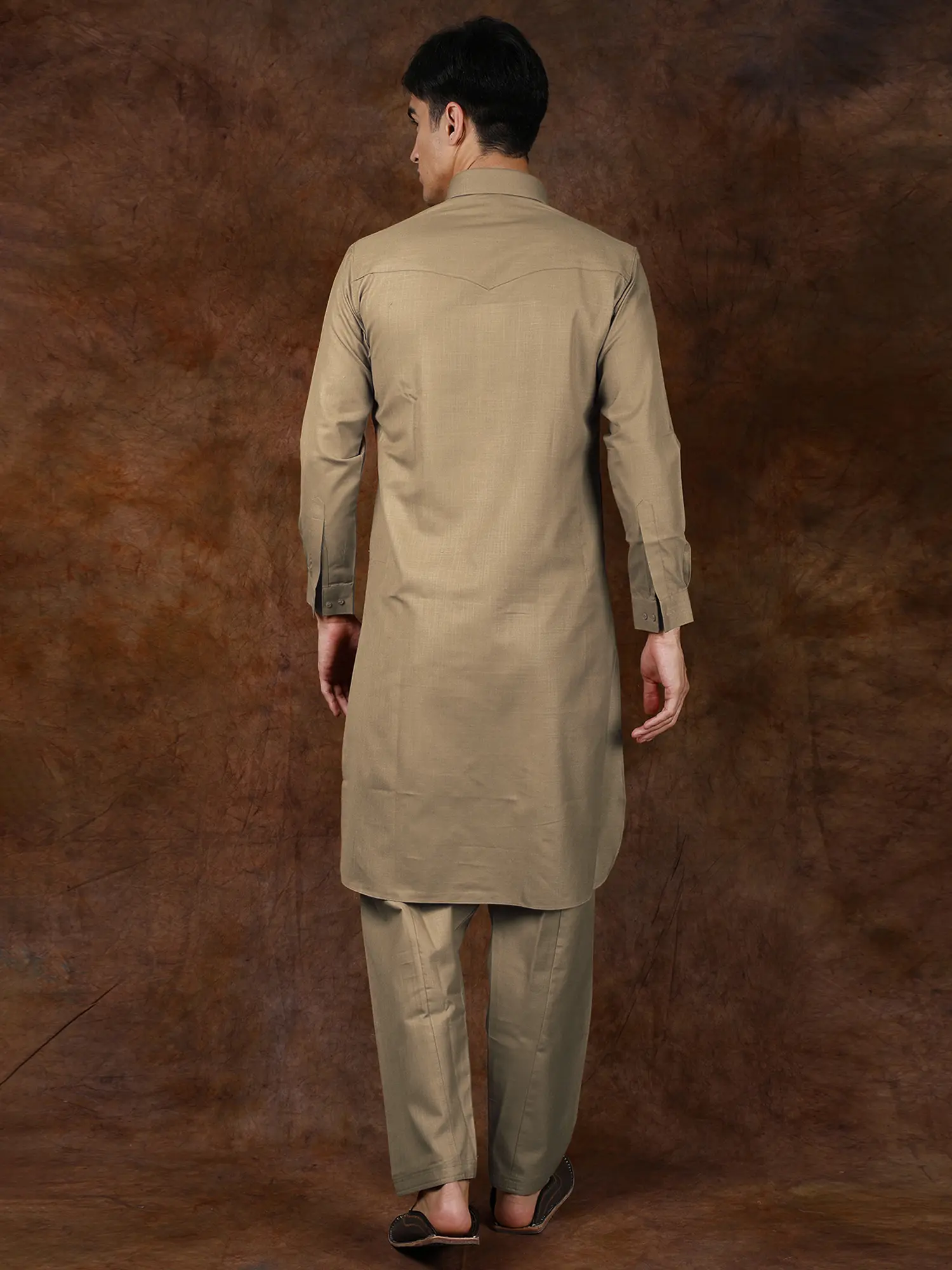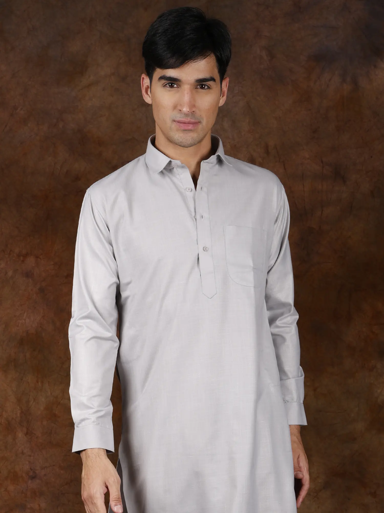 Pastel Plain Pathani Kurta Shalwar Set with Front Pocket