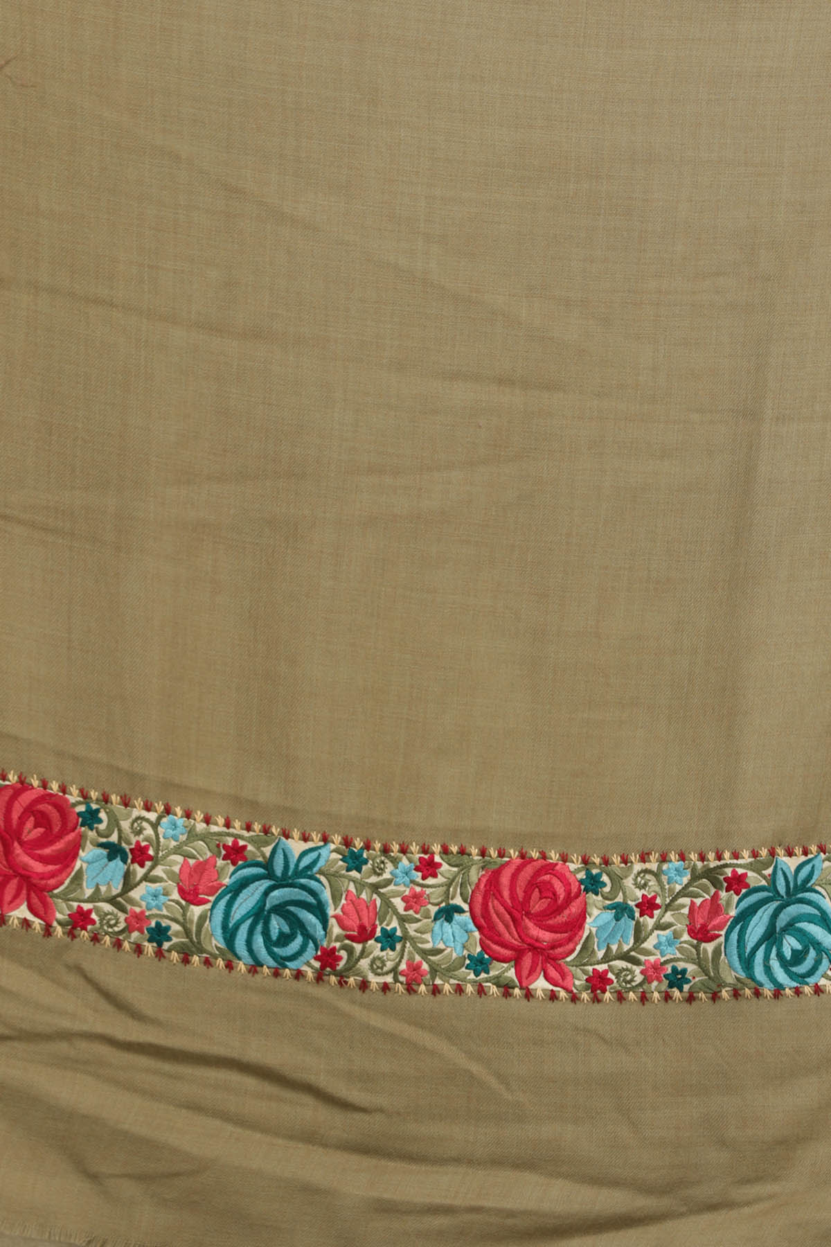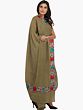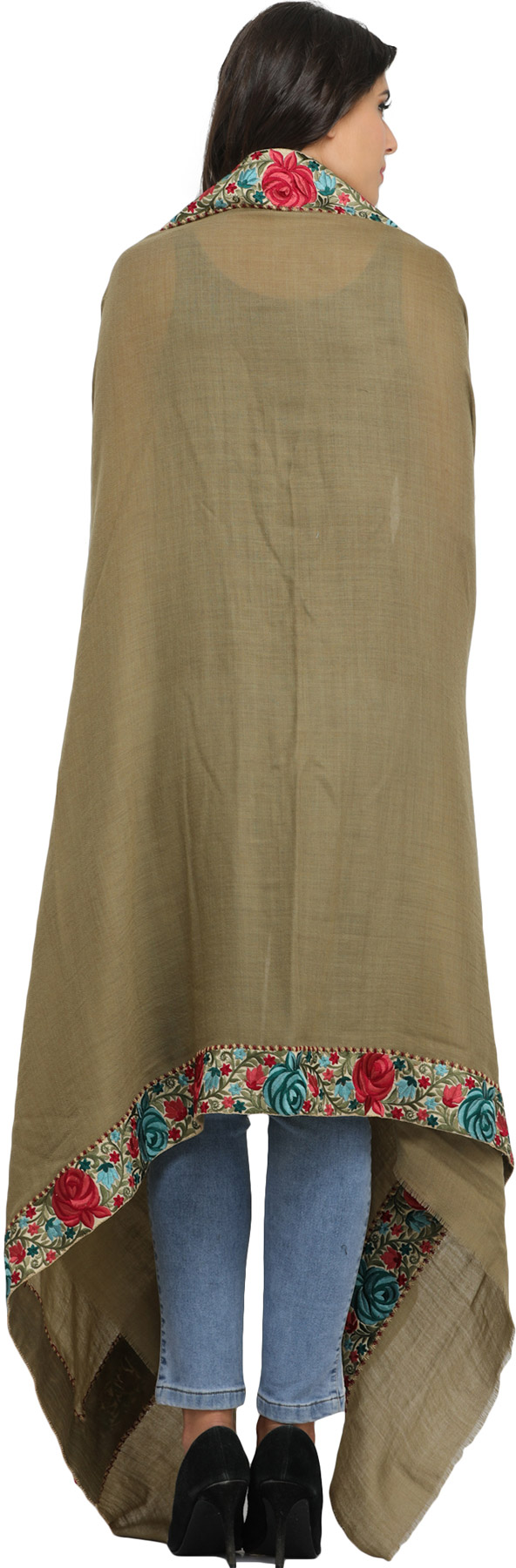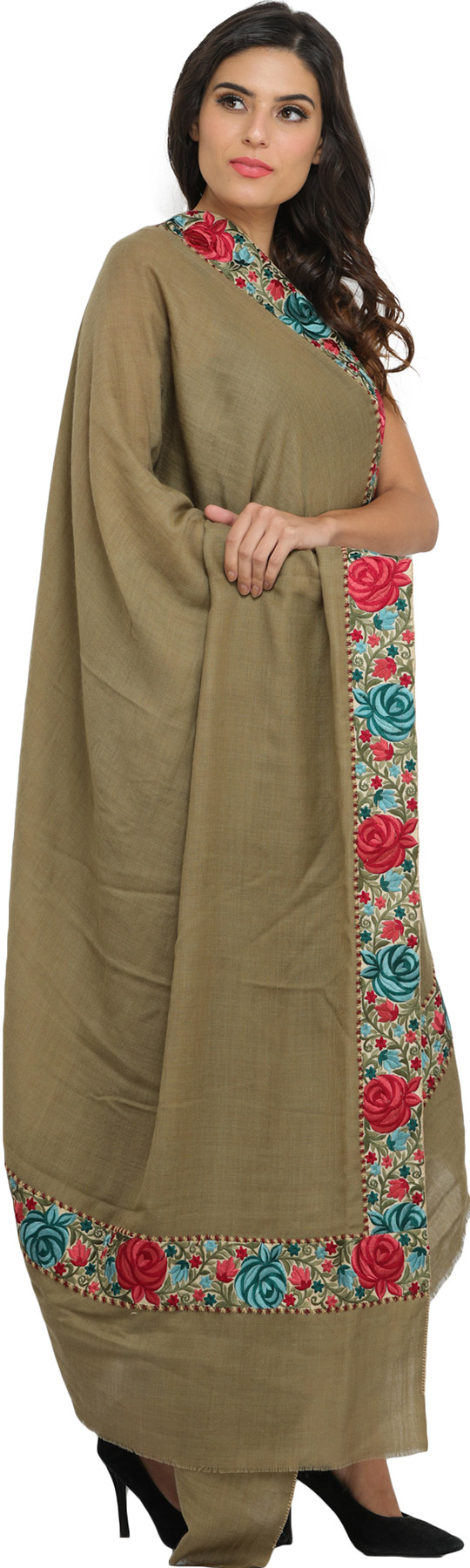 Radiating the heritage of Amritsar, this Plain Shawl is crafted with a Parsi Floral Embroidered Patch Border. From luxurious fabric, they shall pay homage to the artistry of Amritsari craftsmen. The intricate floral border, inspired by Parsi embroidery, adds timeless elegance. This design, originating from the fusion of Persian and Indian aesthetics, has deep historical roots. Today, it seamlessly blends with contemporary fashion, a testimony to its enduring charm. The shawl's soft, soothing colors and meticulous craftsmanship make it a precious piece of artistry, a tribute to the skilled artisans who painstakingly weave tradition into every thread.