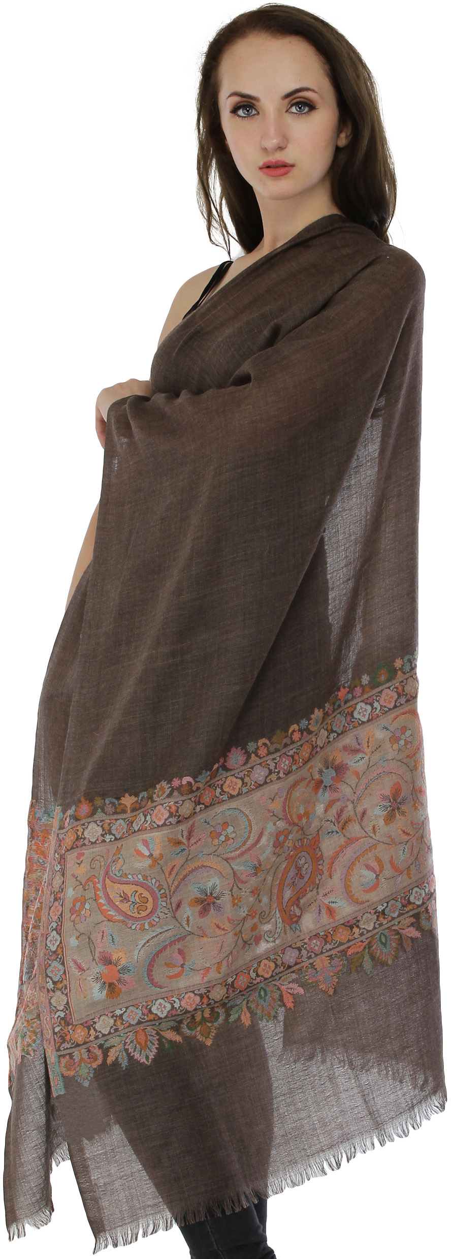 Pure Wool Kani Jamawar Shawl from Amritsar with Embroidered Flowers and Paisleys