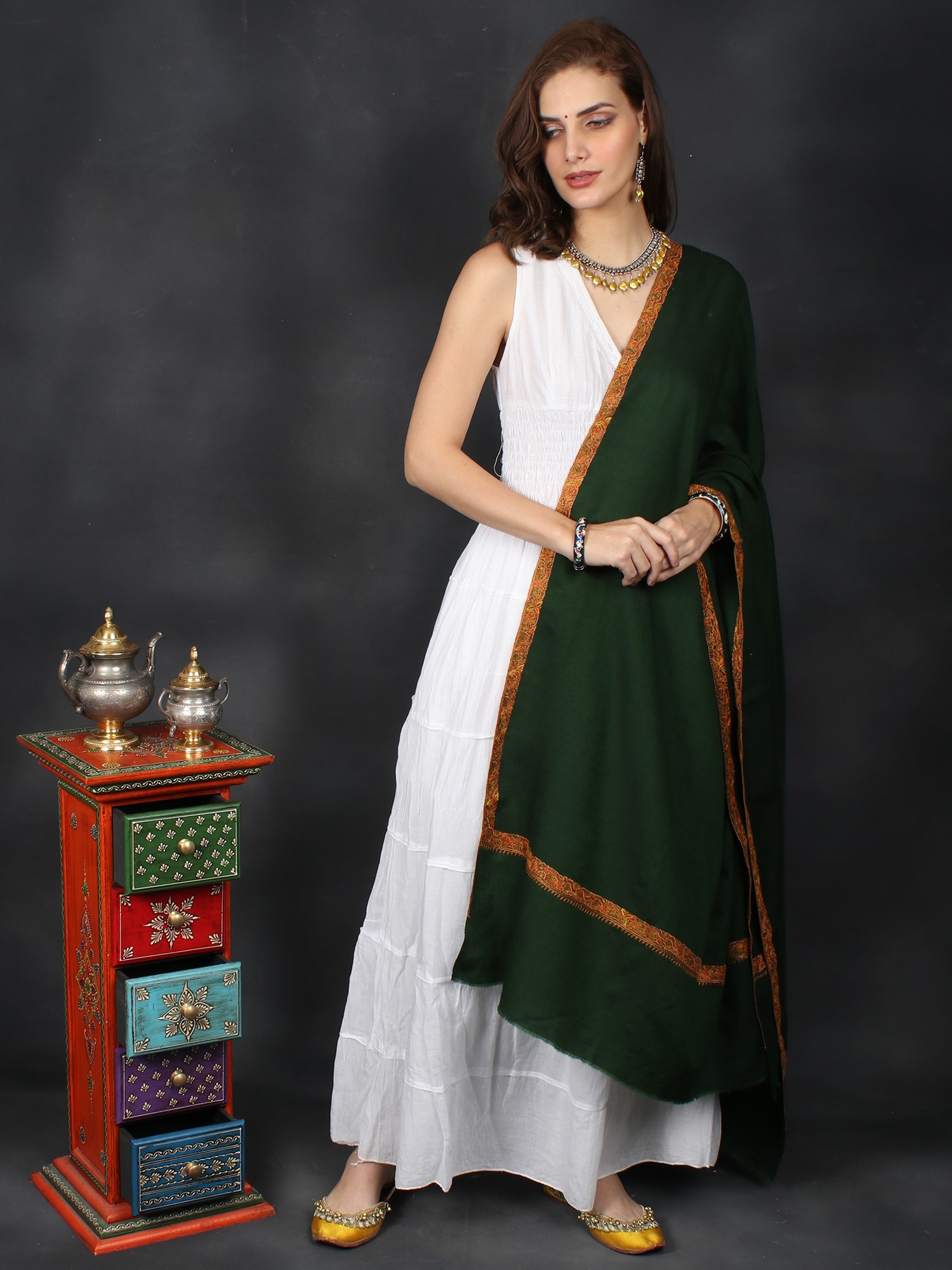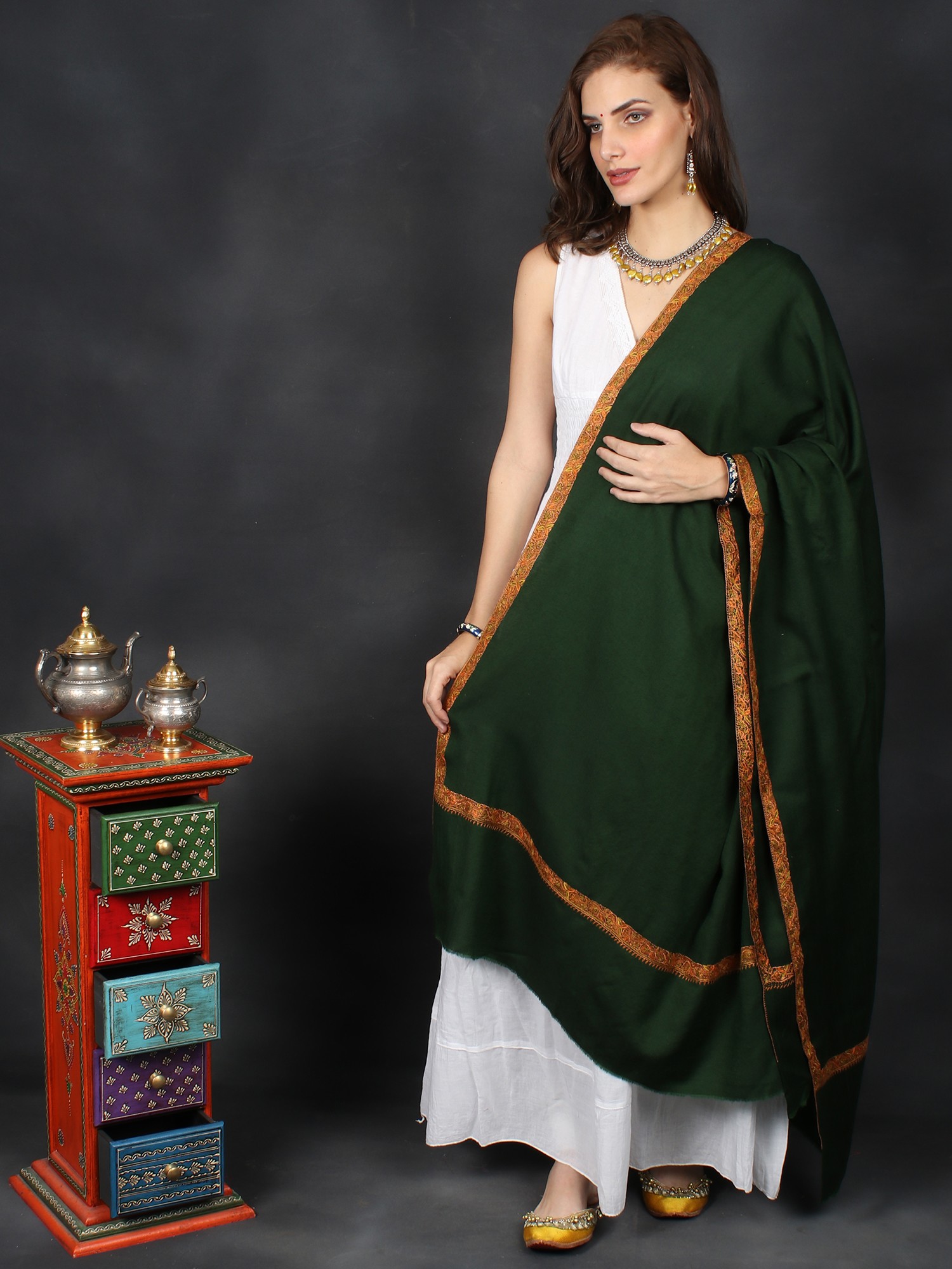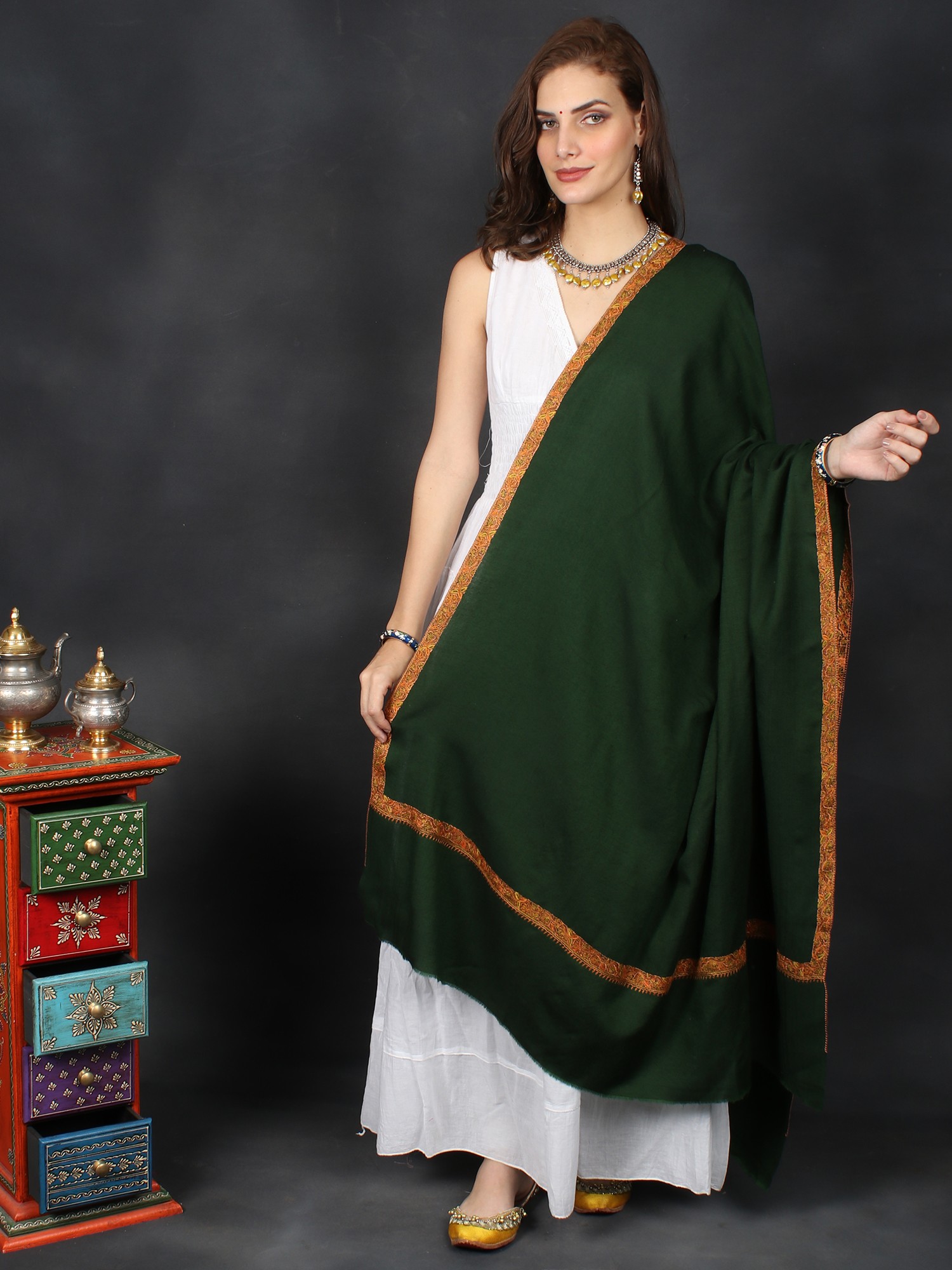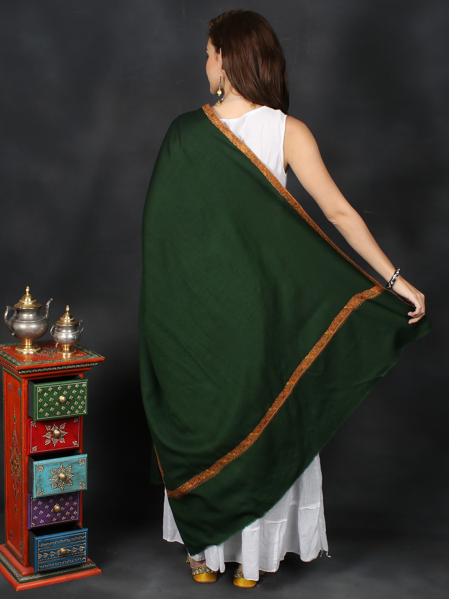 This neem dar sozni embroidery is extremely favored and used among Kashmiri pashmina weavers and embroidery craftsmen. This pattern specifically features the embroidery around the boards of the shawl. The pattern looks like a band and it can be a very thin or thick border around the shawl.