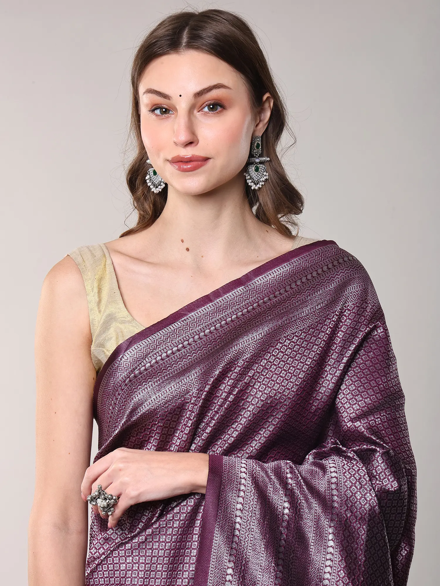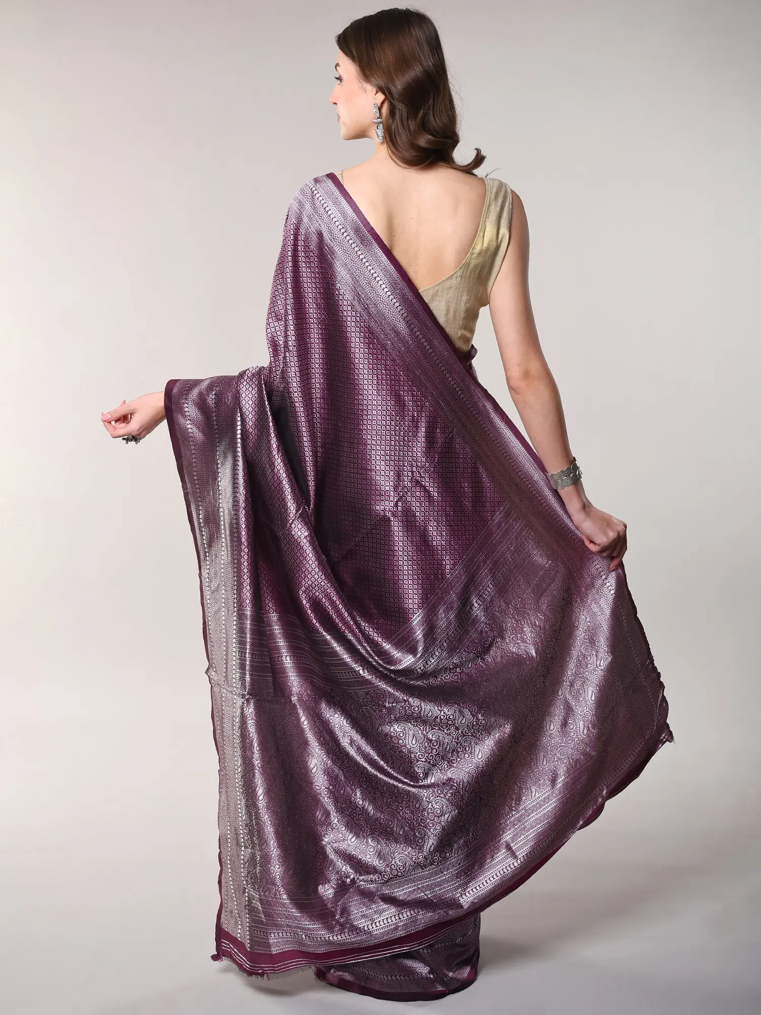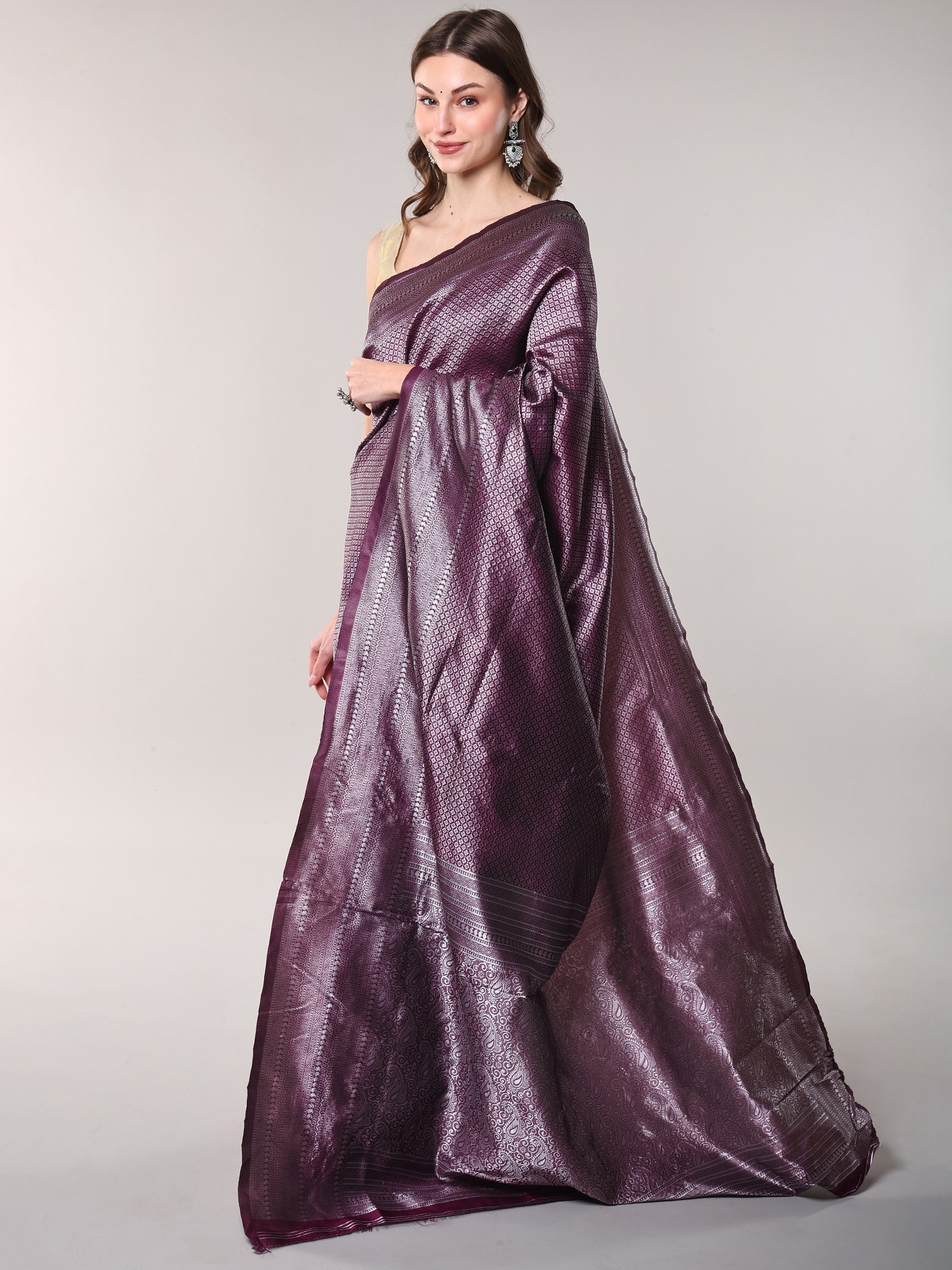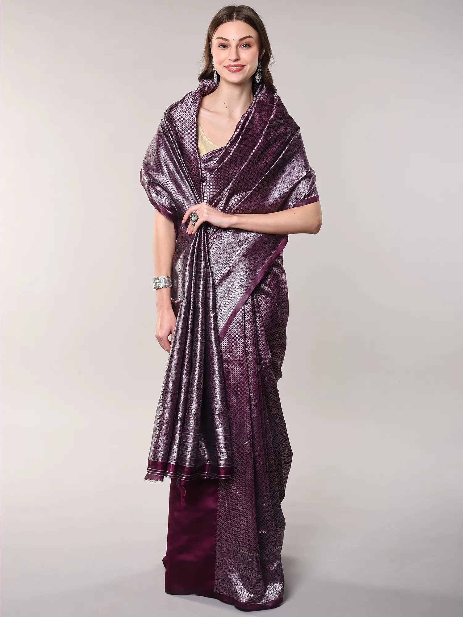 Crafted from luxurious art silk, each thread is meticulously woven to create a fabric that feels both opulent and exceptionally comfortable. The artisans have poured their skill and passion into every inch, employing traditional weaving techniques that speak volumes of their dedication. You'll appreciate the deep, rich plum-purple hue, a shade that radiates sophistication and depth.