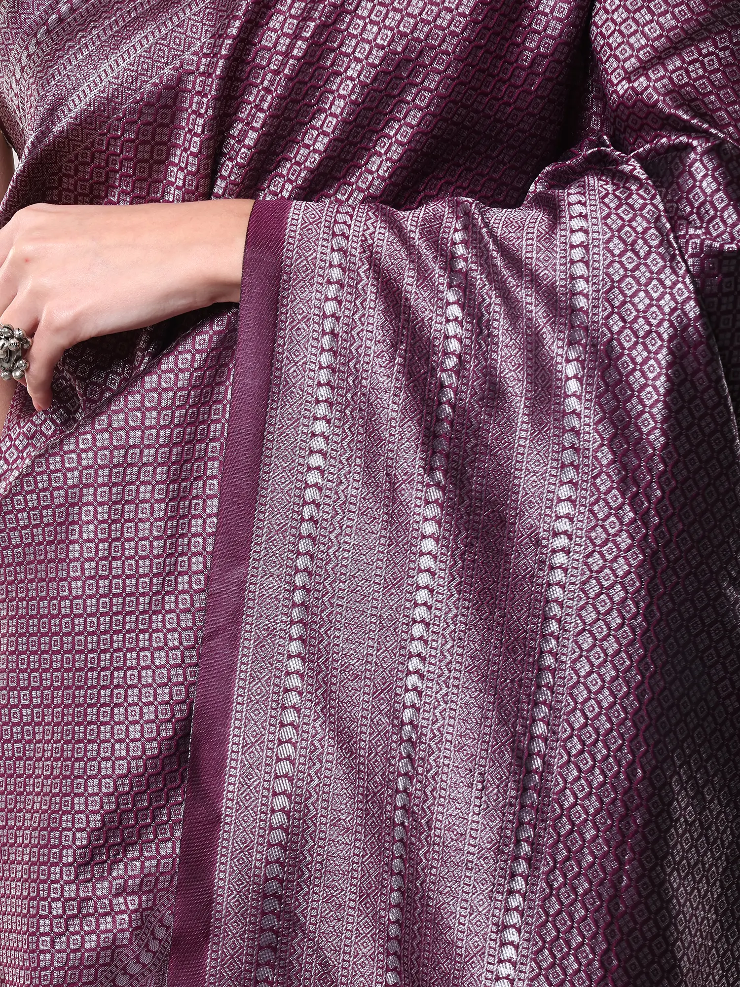 Plum-Purple Art Silk Saree with Woven Diamond Pattern All-Over and Paisley on Anchal
