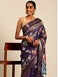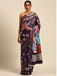 Dark-Slate Digital Printed Floral Motif Kani Polyester Saree with Shawl and Blouse