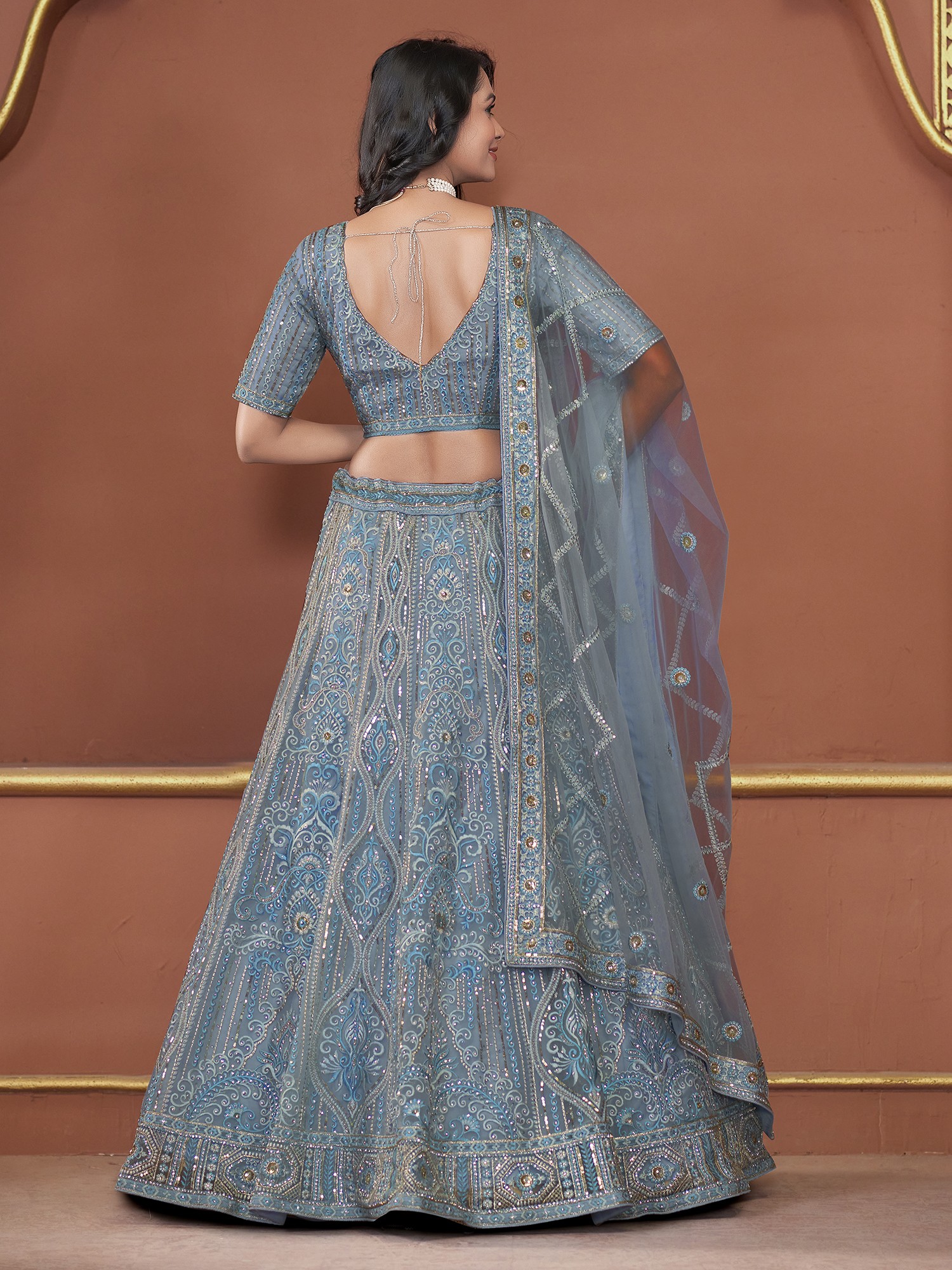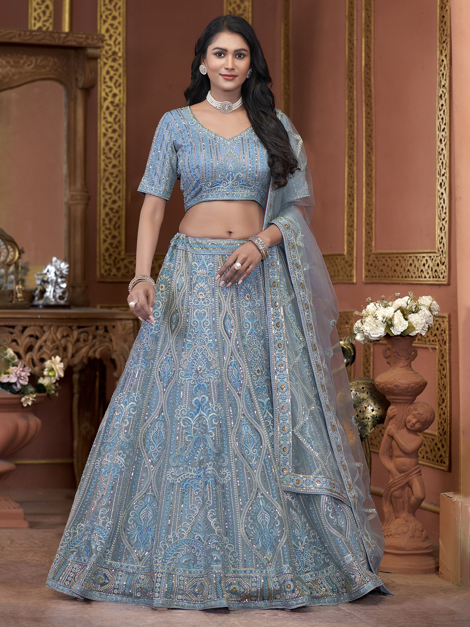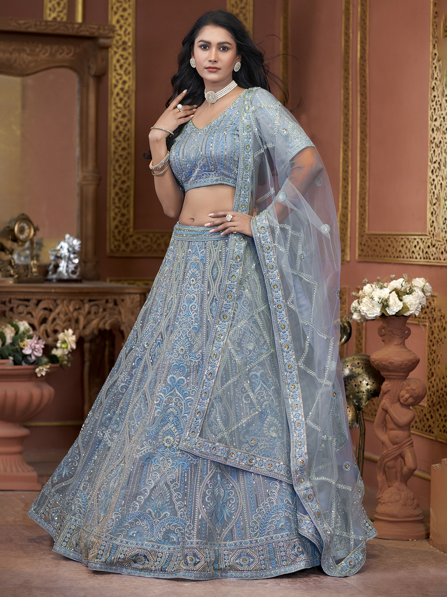All Over Zarkan Work Net Premium Net Floral Design Wedding Wear Lehenga Choli With Matching Dupatta