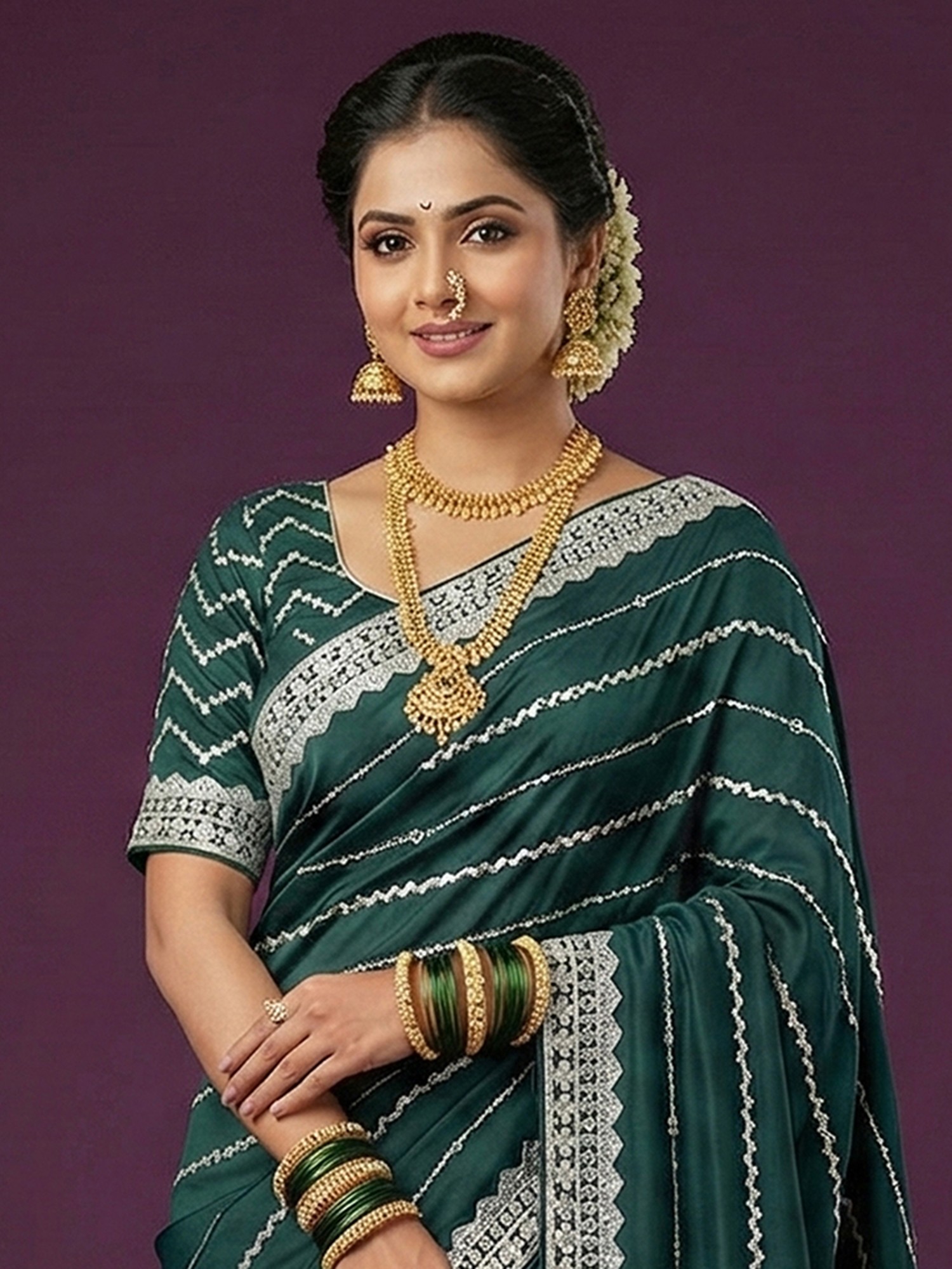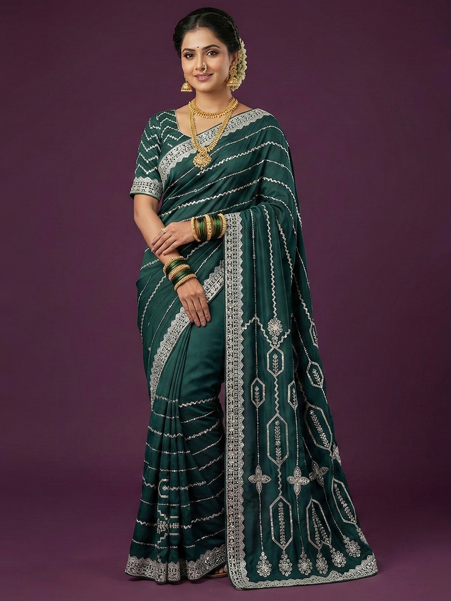 Handwoven Zari Tissue Saree With Four Sequin Embroidery Swarovski Work Designer Party Wear Ethnic Saree For Women