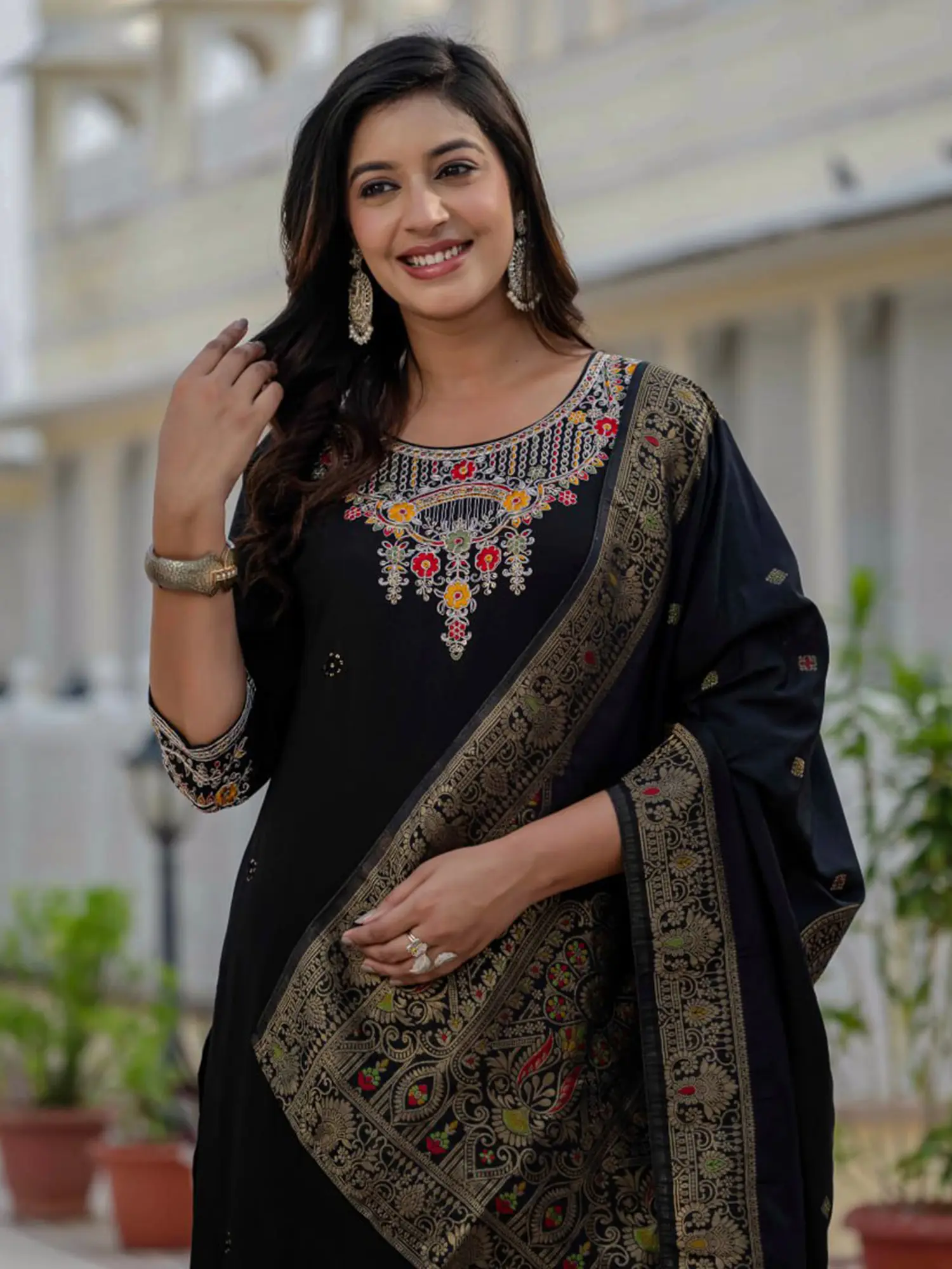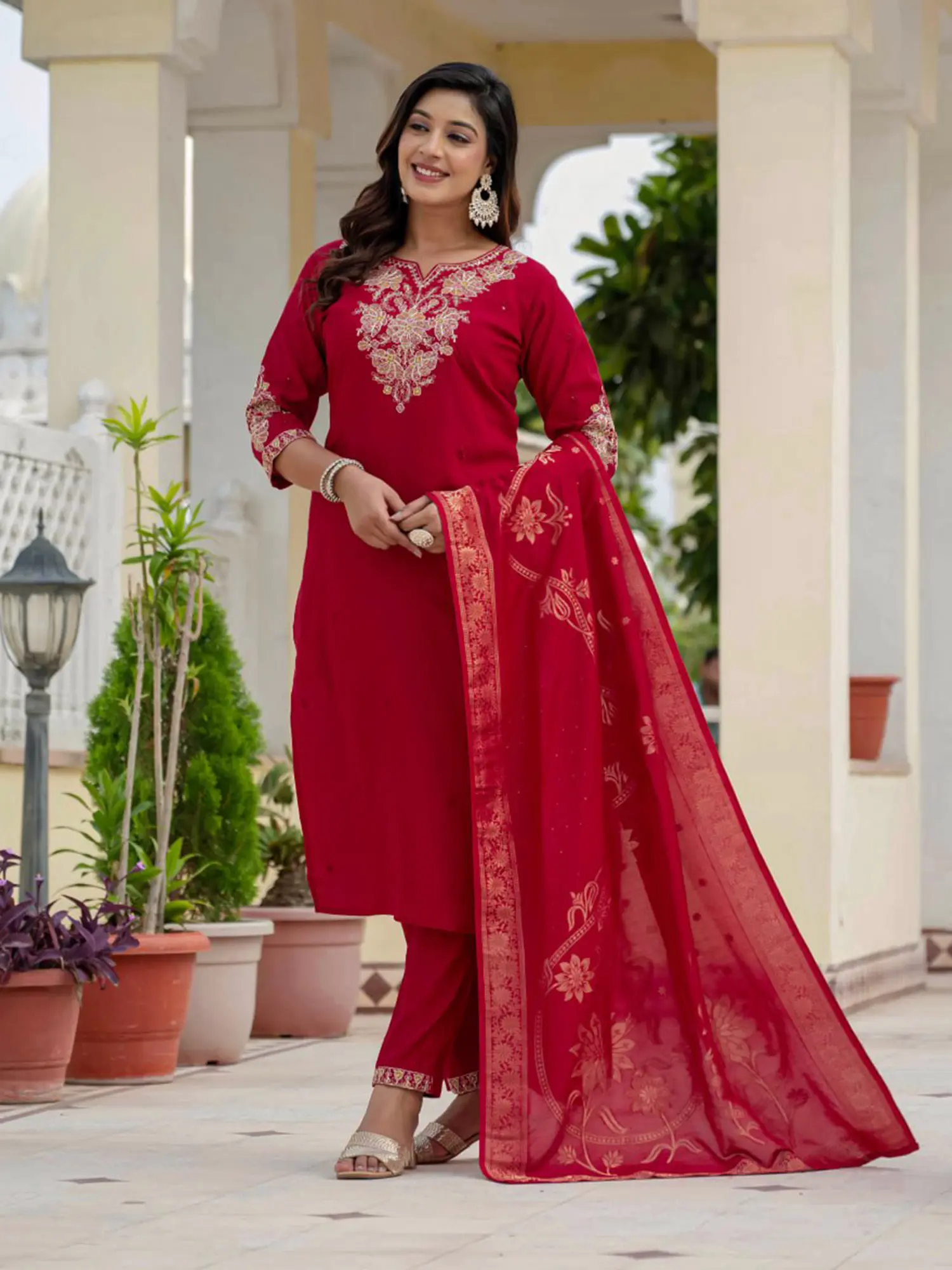 Picture yourself radiating confidence at a grand wedding reception, the silk catching the light with every graceful movement. This ensemble is equally suited for festive gatherings, cultural events, or any evening where you desire to make a memorable impression. It’s the perfect choice when you want to feel effortlessly elegant and distinctly special.